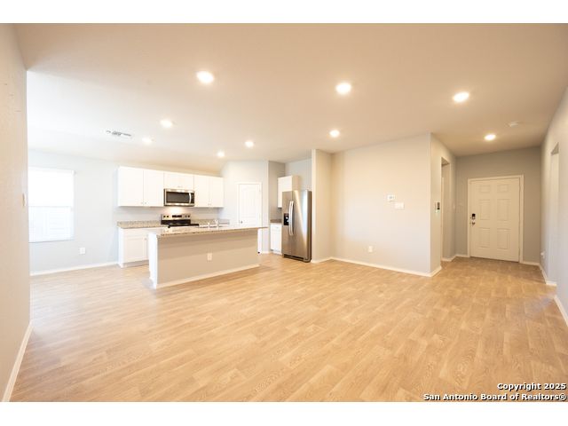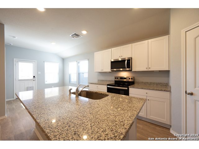Step into exceptional value and comfort with this beautifully designed single-story home featuring an assumable FHA loan at an incredible 4.99 interest rate-a rare opportunity for qualified buyers! The thoughtfully crafted Baxtor floor plan offers 3 spacious bedrooms and 2 baths across 1,409 sq. ft. of open, inviting living space. The gourmet-style kitchen boasts sleek granite countertops, a large island, and stainless steel appliances, all flowing seamlessly into the dining area and oversized family room-perfect for gatherings and everyday relaxation. The private main bedroom is tucked away off the dining area and features a generous walk-in closet. Outside, enjoy a large backyard offering endless possibilities for entertaining, play, or future upgrades. This home blends style, functionality, and unmatched financing potential-don't miss it!