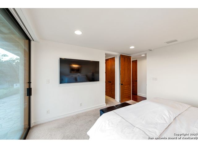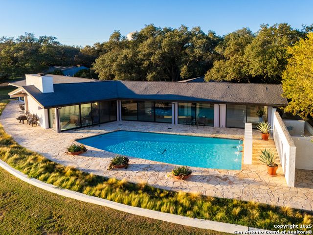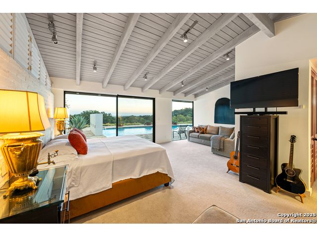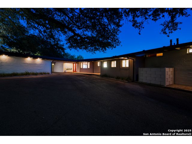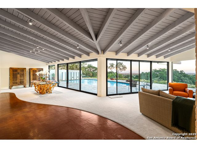 The best view of San Antonio just minutes to Medical Center on a gated acre! Located in the highly desirable Oak Hills neighborhood, this completely restored mid-century modern home offers breathtaking, unobstructed views of the San Antonio skyline. Situated on the first hill in Hill Country, this property provides a perfect combination of privacy and convenience. With over 4,200 sq. ft. of living space, this home features a spacious, open-concept floor plan designed for both entertaining and everyday living. La Vista San Antonio sits on over an acre of mature trees and fully fenced and gated with intercom system for added privacy and security. A porte cochere and circular drive allows for ample parking and ease of maneuvering, in addition there is a two car garage. The property includes double primary suites, each with private en-suite bathrooms and generous walk-in closets. The entire home has been fully restored, keeping the integrity of the home's original mid-century charm. The expansive windows throughout the home highlight the stunning views, and the pool deck offers an ideal space for relaxation and hosting guests while enjoying the skyline. In addition to its prime location and remarkable design, this property offers the flexibility of owner financing, making it an excellent opportunity for the right buyer. The home is set on a private lot with mature landscaping, ensuring peace and seclusion while still being close to local amenities. 203 Lakeridge is a one-of-a-kind property, offering a rare combination of luxury, privacy, and convenience in San Antonio