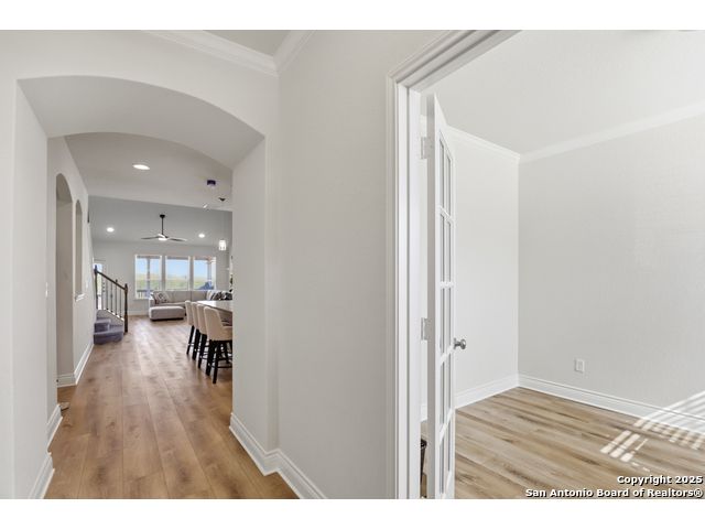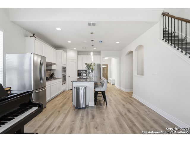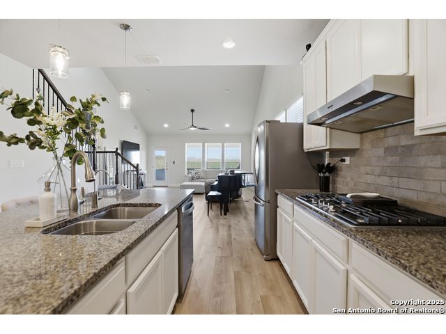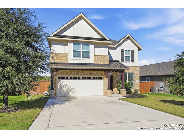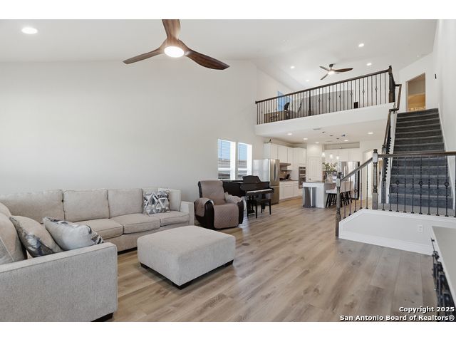 Welcome to this beautifully maintained 2018 Pulte home located in the highly desirable Homestead community. This spacious residence features an open-concept layout with soaring ceilings, two inviting living areas, and abundant natural light that fills every corner of the home. Offering 4 bedrooms, 2.5 bathrooms, a dedicated office, and an additional office nook. The modern kitchen includes granite countertops, stainless steel appliances, osmosis water filter, custom cabinetry, and a large island perfect for meal prep and gathering. LVP (Luxury Vinyl Plank) flooring flows throughout the first floor, adding both style and durability. Custom built in cabinets in laundry room and half bathroom provide additional storage and everyday functionality. Everyroom has remote controled new ceiling fans. New water softner, many upgrades througnt out the house. Step outside to a large covered patio overlooking a peaceful unobstructed view ideal backdrop for outdoor dining and entertaining. Residents of Homestead enjoy access to resort-style amenities including a pool, fitness center, clubhouse, playgrounds, and miles of walking trails. Conveniently located near Randolph AFB, I-35, and shopping and dining options, this home offers the perfect balance of comfort and convenience. Refrigerator located on right convey. Dropped $20K Must see it. Motivated Seller!