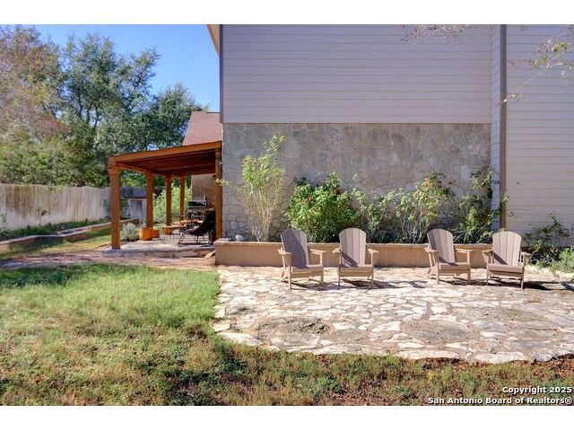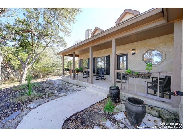 Gorgeous Hill Country custom home on one of the prettiest elevated homesites in Timberwood Park, w/ a view that is truly one in a million. You will love this home from the moment you drive down the quiet cul-de-sac street & see it above the road, nestled among beautiful mature oaks. It offers a 2-car side-entry garage, a big front porch, & a private, exceptionally landscaped backyard w/ a stone sitting area, garden/potting shed, rose bushes, & many other thoughtful landscaping touches. Enjoy your morning coffee & listen to the birds sing while relaxing under the well-designed covered back patio, which is also perfect for evening BBQs & social gatherings. When you step inside, it instantly feels like home. Tall ceilings, an impressive wood-burning fireplace, abundant windows, hardwood floors & light, neutral colors all stand out-along w/ the home's meticulously maintained condition. The kitchen is second to none, featuring custom cabinetry, a very large island, an undermount farmhouse sink, beautiful hard-surface countertops & quality stainless steel appliances. The spacious primary bedroom is located downstairs w/ private access to the patio & includes a large walk-in closet, separate tub & shower & a double vanity. Upstairs you'll find three generously sized bedrooms & two full baths. Beautifully updated & showing pride of ownership throughout. Located in highly rated Comal ISD & within a wonderful neighborhood offering an abundance of amenities, including a 30-acre private park w/ a lake, a 6-hole golf course, tennis courts, basketball court, volleyball court, junior Olympic swimming pool, kiddie splash pad, walking trails, pavilion & clubhouse. This home has it all!