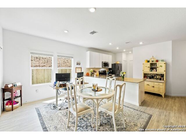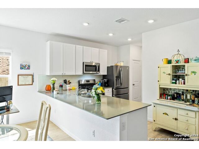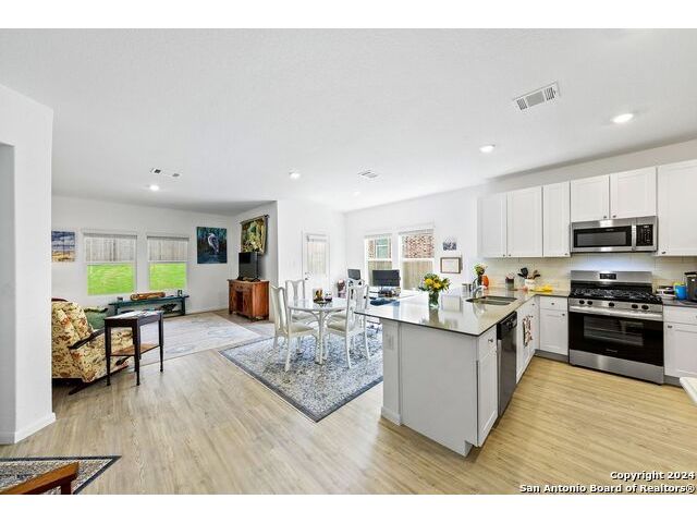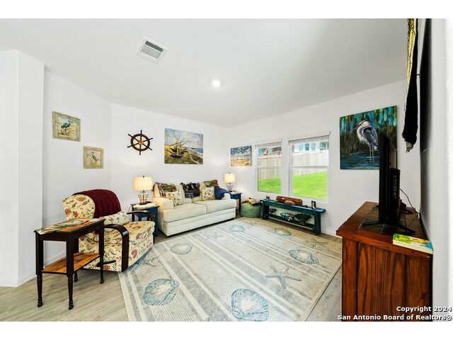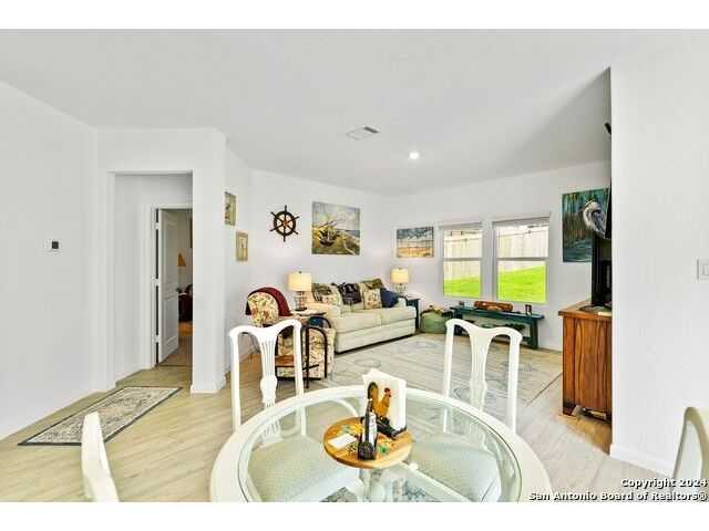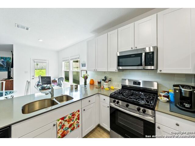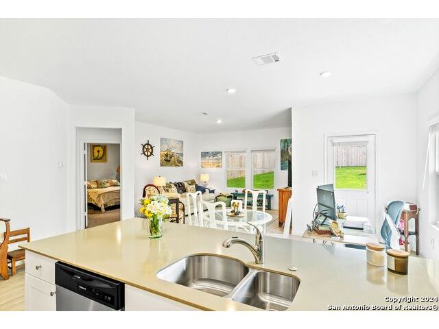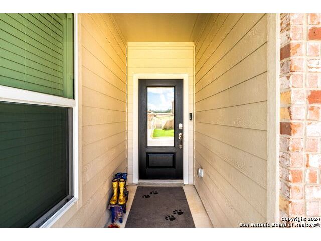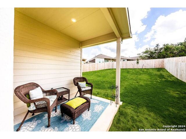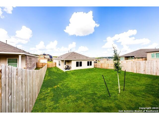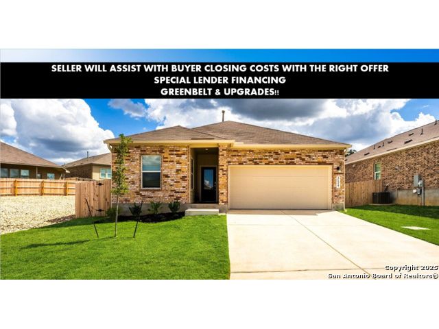 Welcome home! This property is an absolute GEM! Step into a home EQUITY with a tons of home UPGRADES with a private 6,664 SQFT lot on a greenbelt in the RESORT STYLE community! It is an unmatched value compared to new builds and resale homes as it comes with tons of home upgrades. The seller will assist with buyer's closing costs with the right offer! Plus lender incentives towards buyer's closing costs! BIG SAVINGS ON MONTHLY MORTGAGE PAYMENTS! Included are extensive upgrades such as gutters front and back, energy-efficient appliances (fridge negotiable), fans installed in all bedrooms, blinds, eufy camera, screens and solar screens, water softener with a whole-home filtration system drinking water from every faucet, fiber optic super-fast internet connection. The property is energy-efficient with a radiant barrier, ensuring both eco-friendliness and cost-effectiveness. Home features an open floorplan, a brick exterior, a fully fenced private backyard with only one direct neighbor on a side, and additionally on a green belt, an established yard with a full irrigation system (front and back sprinklers ensure effortless yard maintenance). Nestled in the premium location of Bulverde, Texas Hill Country, within a RESORT-STYLE COMMUNITY boasting tons of beautiful amenities, this home is within the renowned COMAL ISD. This property offers a spacious 1459 sq ft open floor plan with 3 bedrooms and 2 bathrooms. The kitchen is equipped with elegant granite countertops and stainless-steel appliances, including an oven, microwave, and dishwasher, all under full warranty. A walk-in pantry complements the kitchen, which opens into the dining area seamlessly. The primary bedroom, positioned at the rear of the property for privacy, includes large windows overlooking the backyard, an ensuite bathroom with a tiled walk-in shower, a double vanity sink, and a spacious walk-in closet. Two additional bedrooms with full bathrooms are situated at the front of the property. The bedroom can also serve as an office, offering ideal privacy and featuring a fiber optic super-fast internet connection for those who work remotely. COMMUNITY: Imagine living in a RESORT STYLE COMMUNITY where every day feels like a vacation! Experience modern living with amenities like a stunning infinity pool, a brand-new Junior Olympic-sized lap pool, and a splash pad for kids. Access a contemporary clubhouse, a well-equipped 24/7 gym, a fitness center, and enjoy yoga classes. Discover miles of scenic walking and biking trails and access to the dog-friendly Kleck Park. Challenge friends to basketball, host BBQs, or spend quality time with your children on multiple playgrounds, where one features an exhilarating zip line, while the other offers diverse play options! Join an engaging community center hosting live music, events, and food trucks. Relax by the catch-and-release fishing pond. Hidden Trails offers a vibrant lifestyle with endless possibilities! LOCATION: Hidden Trails subdivision provides convenience, located just off Highway 281, with a few minutes drive to nearby shopping at HEB and Walmart, as well as Starbucks, restaurants, and medical facilities. All your daily needs are within easy reach. The San Antonio Airport is a mere 30 minutes away. Additionally, the stunning Canyon Lake is just a short 20-minute drive.
