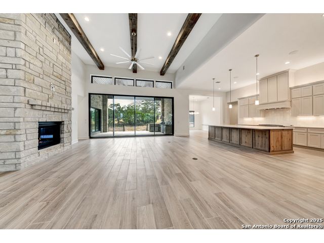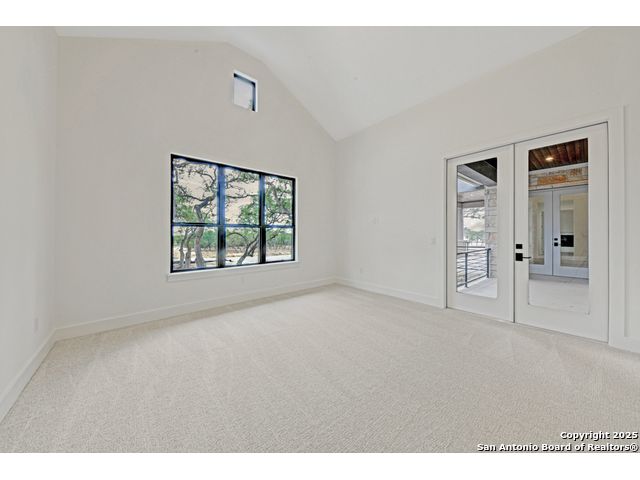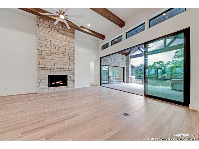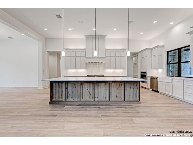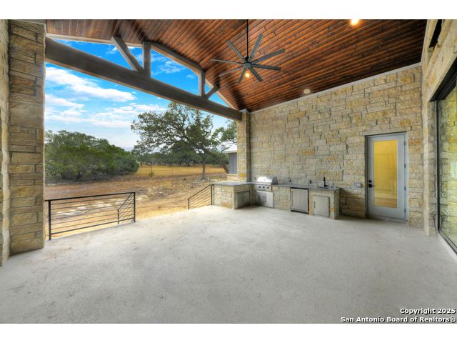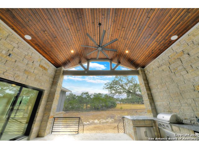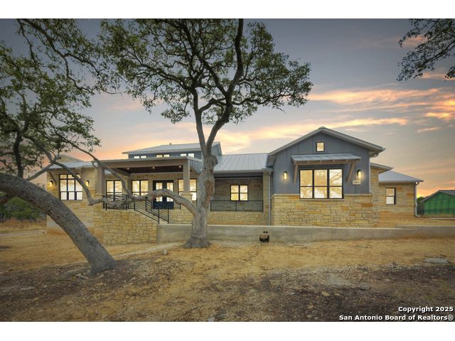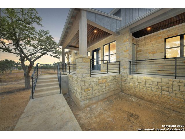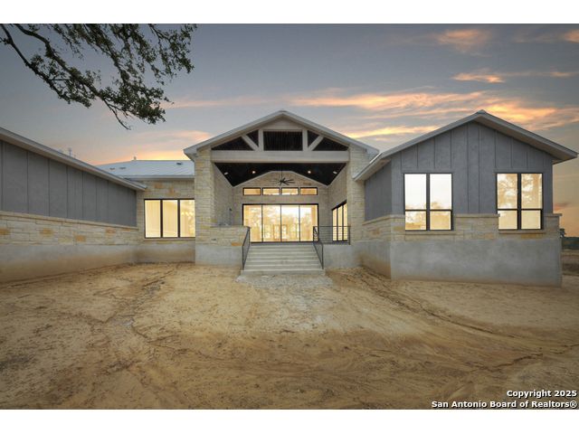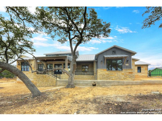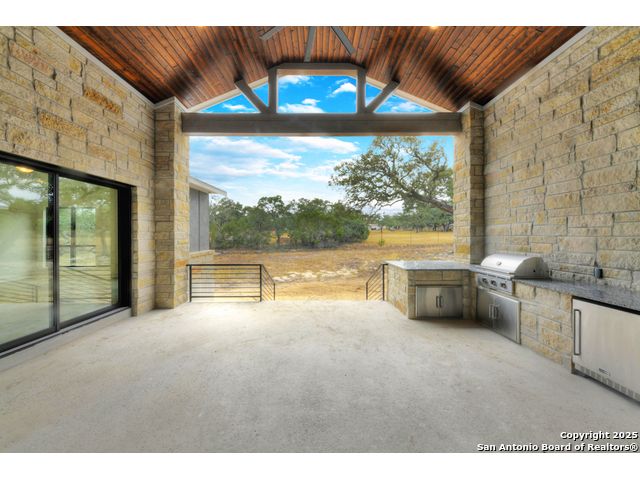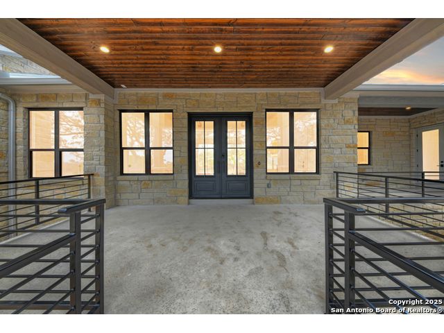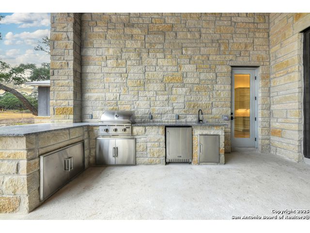 Now under construction with completion scheduled for December 2025, this luxury home is being built by San Antonio's most trusted name in homebuilding, Sitterle Homes. Set on just over an acre in the exclusive enclave of Stone Creek Ranch in Fair Oaks Ranch, and located within highly rated Boerne ISD, this home offers exceptional craftsmanship, thoughtful design, and a quiet Hill Country setting. The floor plan is the same award-winning layout featured in the 2024 Parade of Homes and was designed to deliver both elegance and everyday functionality. All bedrooms feature ensuite baths, including a private guest suite with its own separate entrance. The chef's kitchen offers a 10-foot island, quartzite countertops, a walk-in pantry, and a separate back kitchen for added prep and storage space. The great room includes a fireplace, wood-wrapped beams, 16-foot ceilings, and sliding glass doors that open to a vaulted outdoor living area with a built-in kitchen. Additional features include a game room with bar and sliders to the patio, a wine niche with floor-to-ceiling stone accent, floating shelves, and two 6-foot wine refrigerators. Vaulted ceilings enhance the guest bedrooms, study, and outdoor patio. The primary suite includes a built-in coffee bar for added comfort and luxury. Interior selections feature Michael Edwards custom cabinetry throughout, all with soft-close doors and drawers, bronze-framed windows, a double-door entry, and stylish finishes. Flooring includes wood-look tile in the main living areas and plush carpet in the bedrooms. Located near the neighborhood amenities center with pool, lazy river, and clubhouse, this home is an ideal blend of luxury and lifestyle in one of Fair Oaks Ranch's most desirable communities.