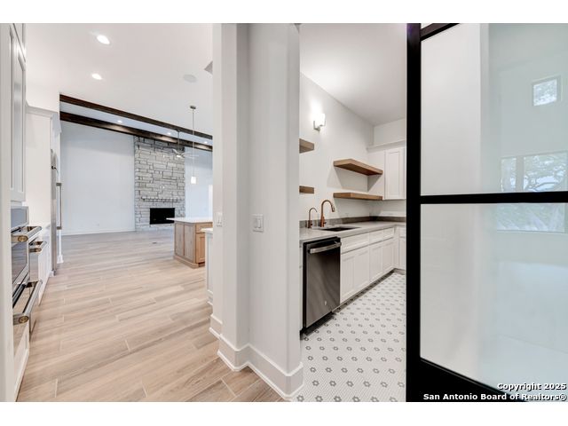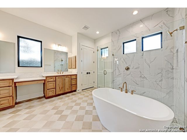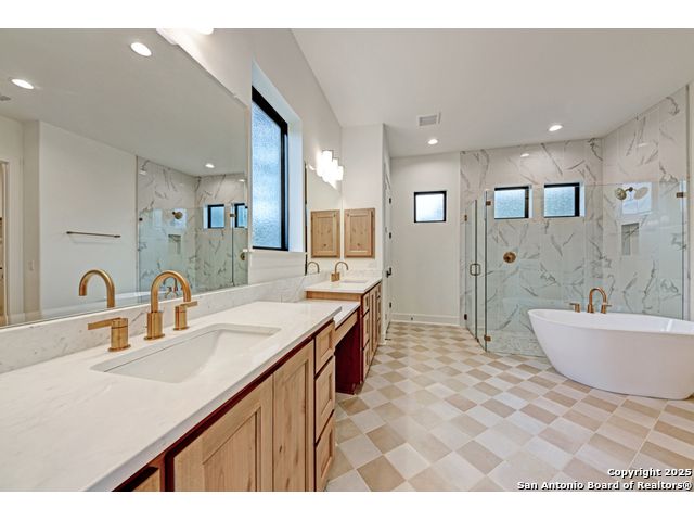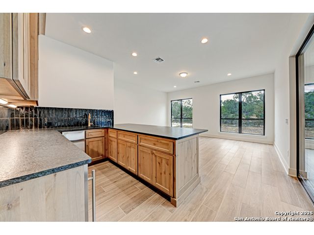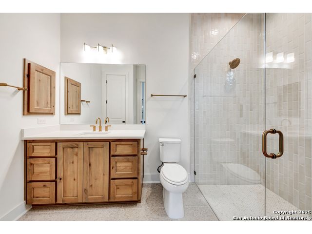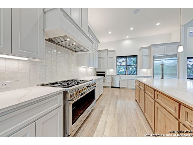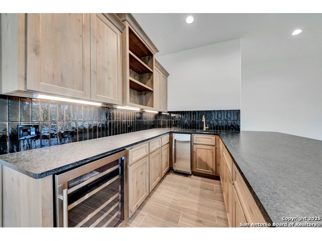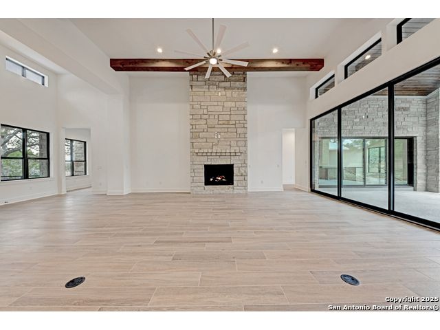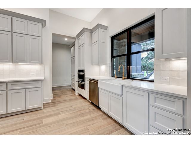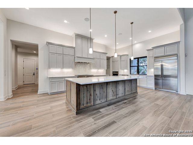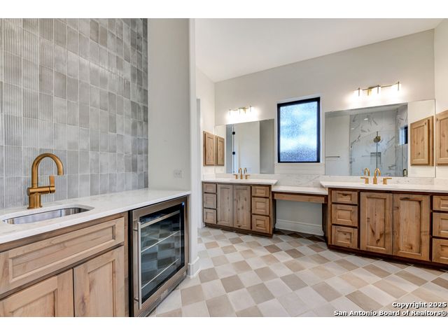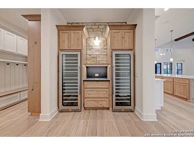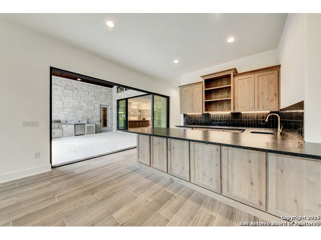 Now under construction with completion scheduled for December 2025, this luxury home is being built by San Antonio's most trusted name in homebuilding, Sitterle Homes. Set on just over an acre in the exclusive enclave of Stone Creek Ranch in Fair Oaks Ranch, and located within highly rated Boerne ISD, this home offers exceptional craftsmanship, thoughtful design, and a quiet Hill Country setting. The floor plan is the same award-winning layout featured in the 2024 Parade of Homes and was designed to deliver both elegance and everyday functionality. All bedrooms feature ensuite baths, including a private guest suite with its own separate entrance. The chef's kitchen offers a 10-foot island, quartzite countertops, a walk-in pantry, and a separate back kitchen for added prep and storage space. The great room includes a fireplace, wood-wrapped beams, 16-foot ceilings, and sliding glass doors that open to a vaulted outdoor living area with a built-in kitchen. Additional features include a game room with bar and sliders to the patio, a wine niche with floor-to-ceiling stone accent, floating shelves, and two 6-foot wine refrigerators. Vaulted ceilings enhance the guest bedrooms, study, and outdoor patio. The primary suite includes a built-in coffee bar for added comfort and luxury. Interior selections feature Michael Edwards custom cabinetry throughout, all with soft-close doors and drawers, bronze-framed windows, a double-door entry, and stylish finishes. Flooring includes wood-look tile in the main living areas and plush carpet in the bedrooms. Located near the neighborhood amenities center with pool, lazy river, and clubhouse, this home is an ideal blend of luxury and lifestyle in one of Fair Oaks Ranch's most desirable communities.