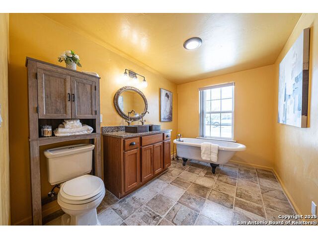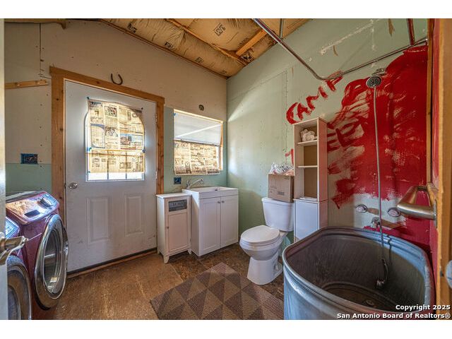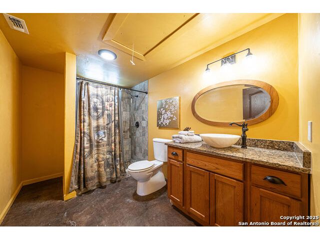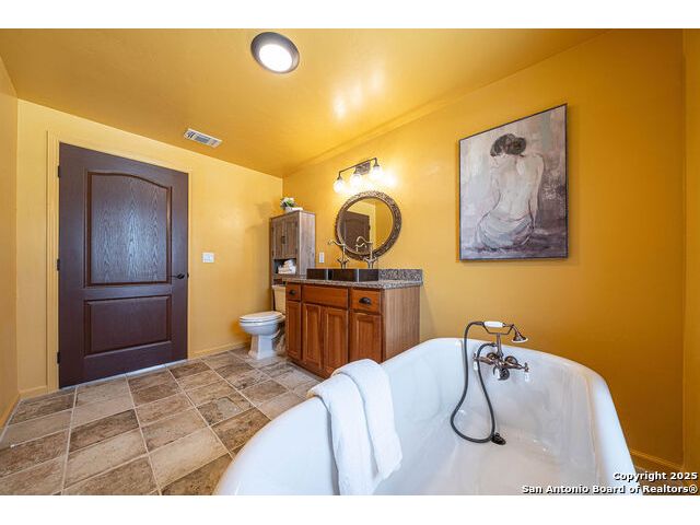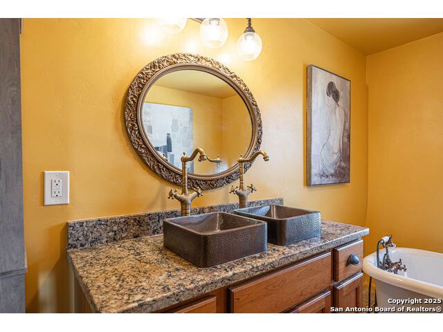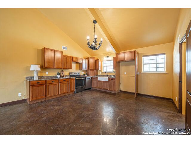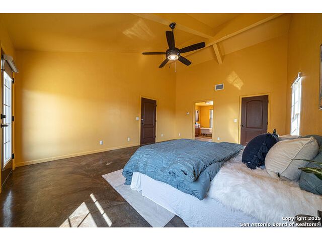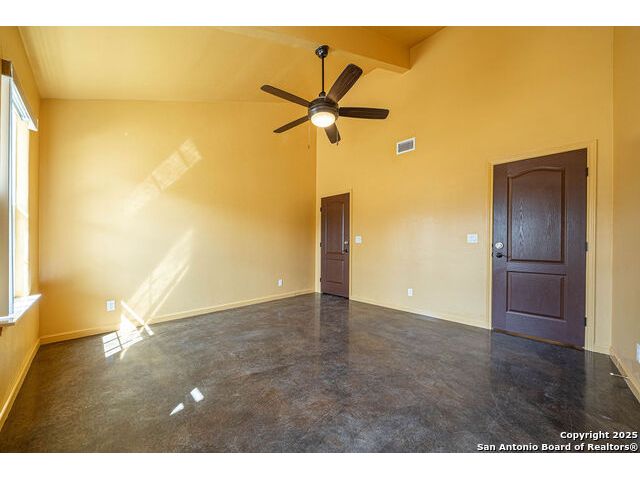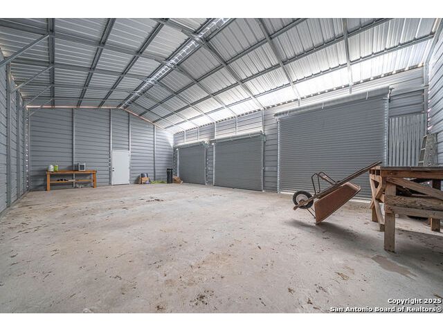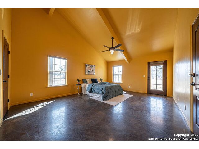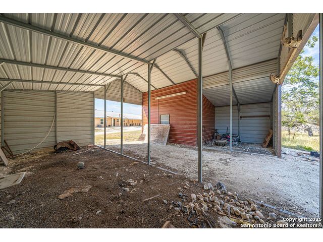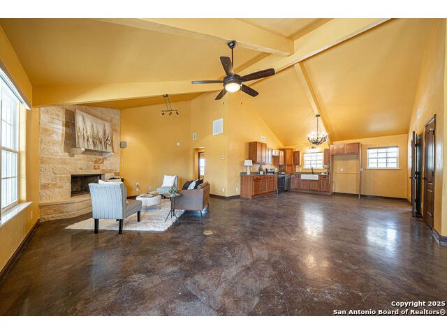 The property at 6415 Old Harper Rd. Fredericksburg, Tx 78624 is a 35.3-acre, ag-exempt Hill Country property featuring four structures. Located approximately 20 minutes from Fredericksburg and 30 miles from Kerrville in Gillespie County, Texas. It is in the Harper ISD school district. The property spans 35.3 acres of gently rolling, tree-studded land with views of the Hill Country. It is agricultural exempt for tax purposes. The property is equipped with a registered well and septic system. It features perimeter fencing, including a mix of peeled cedar ranch fencing with gates and low barbed wire. There are four existing structures on the property: a main home, a cabin, and a modular barn, and a large 3 bay garage with RV covered parking behind the garage. The main house is a newly constructed home completed around 2020, featuring a stucco exterior and metal roof. Size & Rooms: 2,016 square feet with 3 bedrooms and 2.5 bathrooms. The primary bedroom is on the main level. Interior Features: It has an open floor plan, high vaulted ceilings, concrete flooring, a large living area with a wood-burning stone fireplace, and solid wood kitchen cabinets. Comfort: The home features central electric heating and cooling (two HVAC systems), ceiling fans throughout, and large covered front and back porches designed to catch consistent breezes. The primary bath includes a soaking/claw foot tub. There is a half-bath in the mudroom with a utility sink, and the yard is high-fenced. Cabin The separate cabin is climate-controlled and features its own amenities. Size: 704 square feet. Features: It includes a galley kitchen, 1.5 baths, and both front and back porches. It is described as ideal for an office, studio, guest lodging, or B&B. Modular Barn The property also includes a modular barn with a dedicated storage room and open areas suitable for pens.
