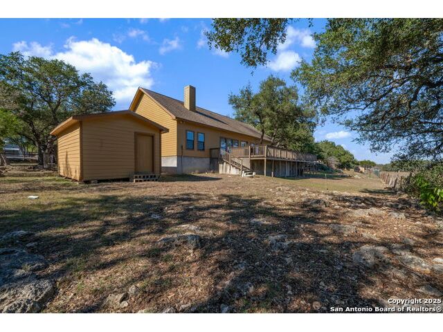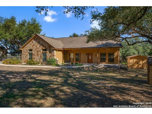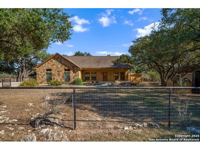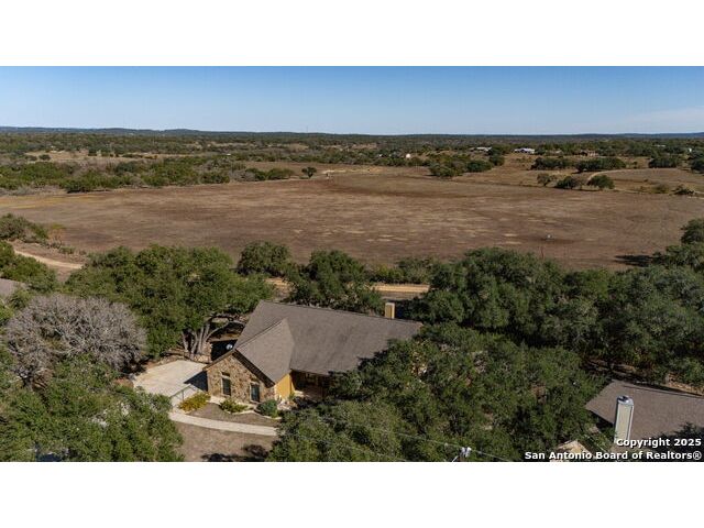 Hill country living on half and acre backing up to private ranch with BIG views to enjoy off your oversized back deck. This home is single story , No steps, open floor plan. Three spacious bedrooms, two full bathrooms, fenced in yard , small shop / storage shed , private well and septic. This custom home was built to last with wonderful bones! Hardwood floors, stone countertops , large windows and fantastic master suite. The Rivermont HOA offers a great Riverfront park private for the neighborhood , private swimming pool and plenty of space for recreational fun.