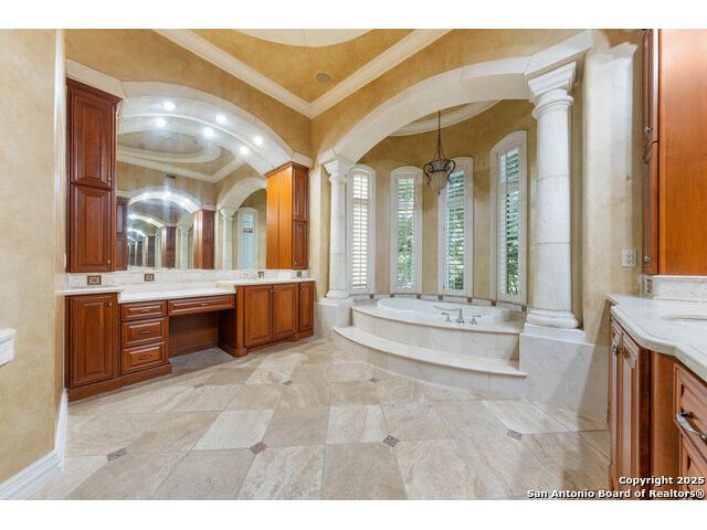 Luxury Mediterranean-style Lake Travis waterfront estate in prestigious community of Costa Bella. Spanning 8912 square feet, this gated Austin home features 8 bedrooms, 6 full & 3 half baths, 2-story living & great rooms, gourmet kitchen, library, wine cellar, office, workout room, billiards room & more. Outdoor living includes cabana, infinity pool & spa, terraces, outdoor kitchen, fireplace, and a private boat dock with deep-water access. Property sold "As-is". Buyer and/or buyer's agent responsible for verifying all pertinent information deemed relevant by the prospective buyer, including but not limited to square footage, acreage, utilities, taxes, zoning, permitting, condition, school zones, HOAs, etc.