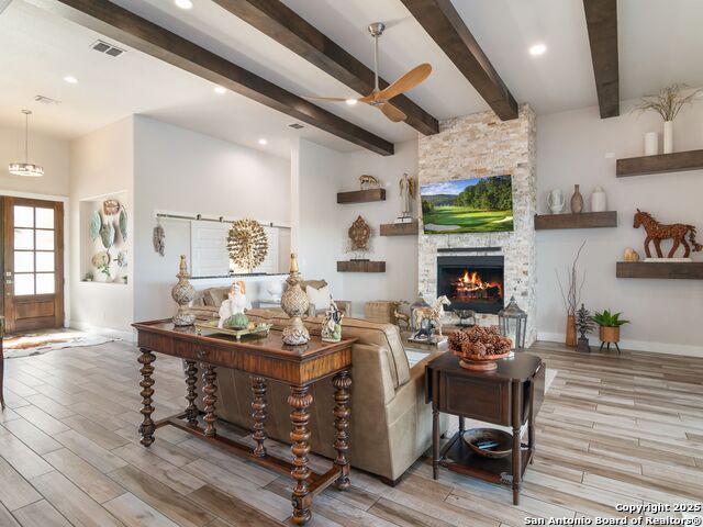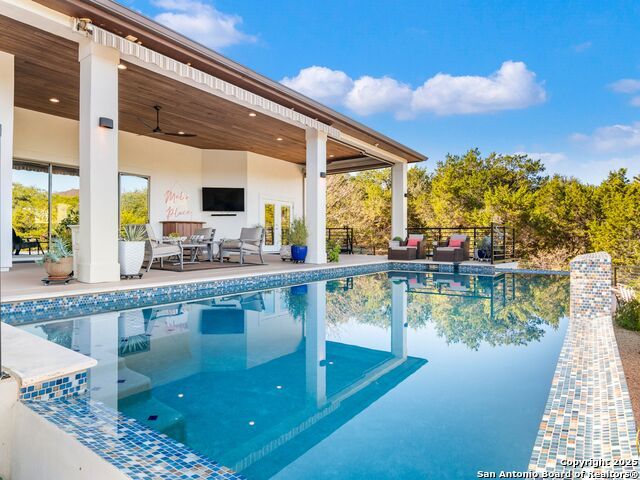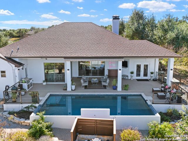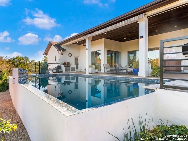 Stunning 1.45-Acre Retreat with Resort-Style Outdoor Living! Discover this beautifully designed one-story home perfectly set on a spacious cul-de-sac lot, offering an ideal blend of elegance, comfort, and functionality. Step inside to an inviting open floor plan where the living, dining, and oversized kitchen flow seamlessly together - an entertainer's dream! The impressive kitchen showcases expansive counter space, abundant cabinetry, and a large walk-in pantry with a stylish barn door. Large sliding doors extend your living space outdoors to a generous covered patio overlooking the sparkling pool, built-in grill, and relaxing hot tub. Stylish study featuring custom built-in cabinetry with display lighting. The private owner's suite provides a true sanctuary with a spacious walk-in shower, separate vanities, dual closets, and direct access to the backyard oasis. A versatile game room with its own full bath offers convenient access to the pool area, perfect for guests or recreation. Secondary bedrooms each feature walk-in closets and share a well-designed Jack-and-Jill bathroom. The large laundry room provides exceptional convenience with cabinetry, countertop space, a sink, and extra storage. Additional features include a 3-car side-entry garage with epoxy flooring and overhead storage, plus a Generac generator that adds extra peace of mind. This exceptional property delivers refined interiors, thoughtful design, and exceptional outdoor enjoyment - a rare gem you won't want to miss!