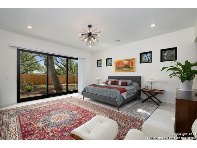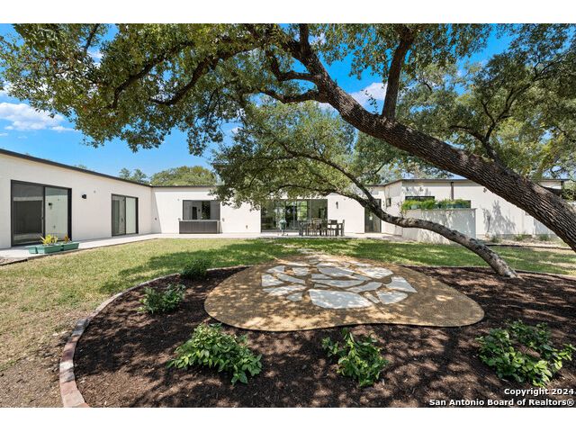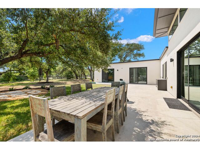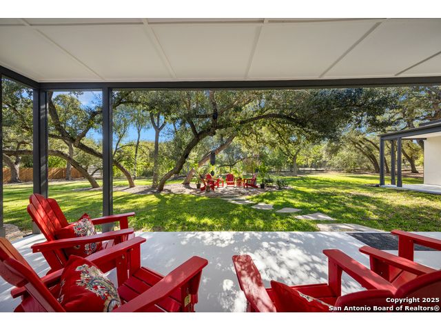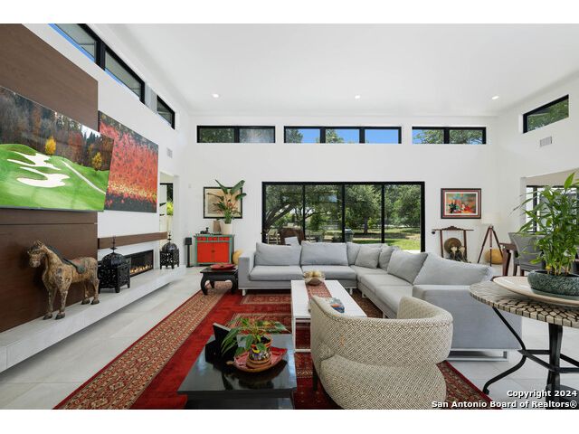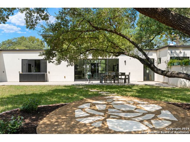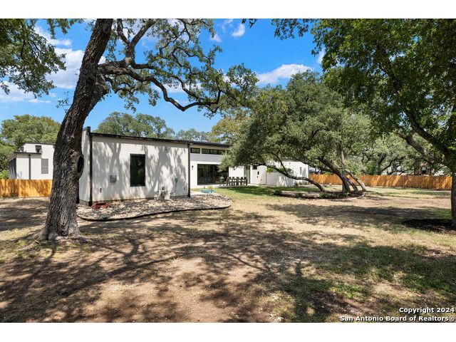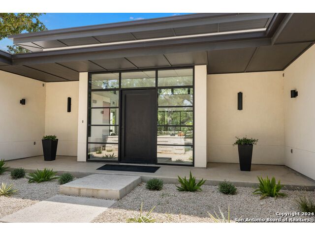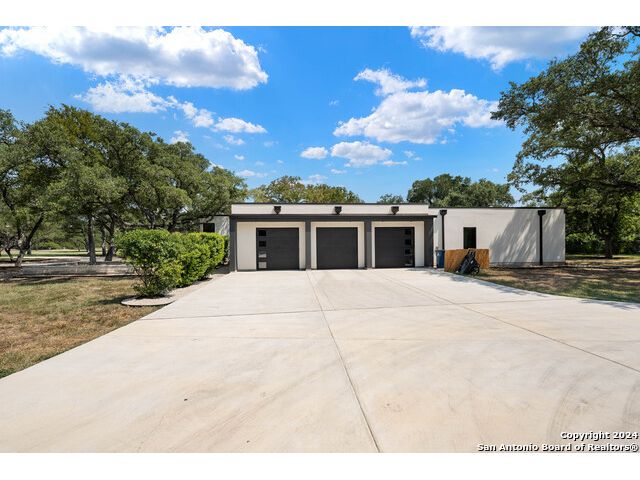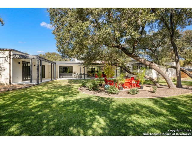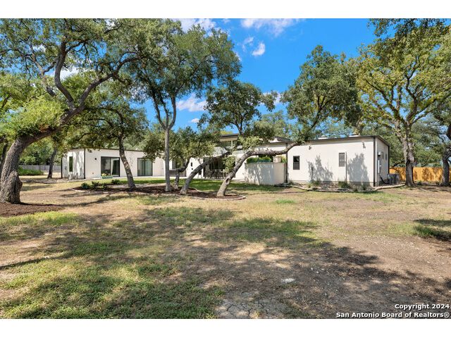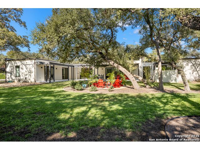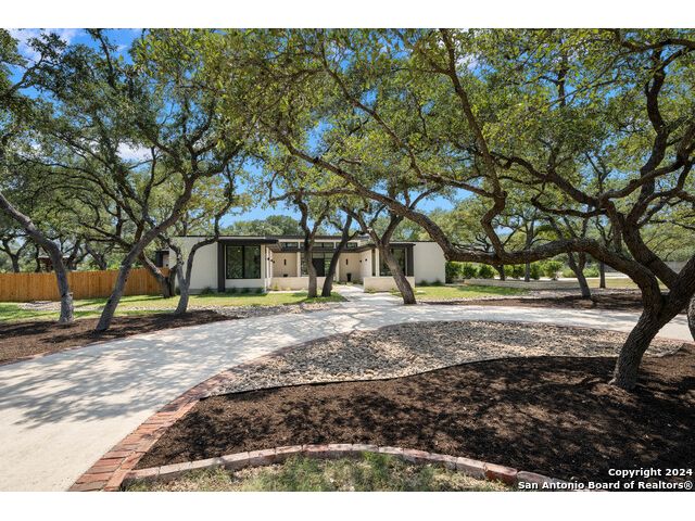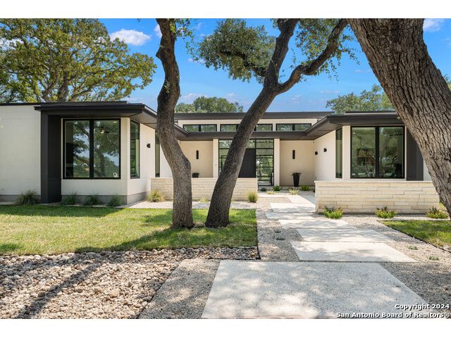 Nestled in the prestigious neighborhood of Shavano Park, this modern home exudes luxury and quality craftsmanship, while having wonderful unobstructed views off the front. Spanning a spacious layout, the main house features three bedrooms and three bathrooms, providing ample comfort and privacy. In addition, an attached casita offers a separate living area, bedroom, and bathroom, ideal for guests or extended family. The heart of the home is the kitchen, designed for both function and style. A large island serves as a central gathering spot, surrounded by custom cabinets and a sleek bar area. A standout feature is the Ferrari Red Bertazzoni range with double ovens, making a bold statement and offering high-performance cooking capabilities. Adjacent to the main kitchen, a prep kitchen and walkthrough pantry provide additional storage and workspace, perfect for entertaining and culinary endeavors. Work-from-home needs are met with a generously sized office space, offering a quiet and productive environment. The master suite is a private retreat, complete with a coffee bar, under-counter refrigerator, and access to a serene private courtyard. The master closet is thoughtfully designed with built-in wardrobe closets, ensuring ample storage and organization. Situated on a large, flat lot, the property is surrounded by over 60 mature trees, offering shade and natural beauty. This is one of the most desirable lots on one of the most desirable streets in Shavano Park, this home blends modern luxury with tranquil living, making it an exceptional choice for those seeking both comfort and sophistication.