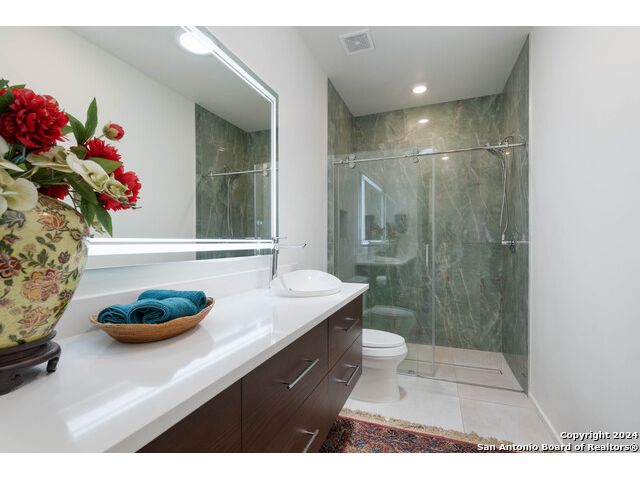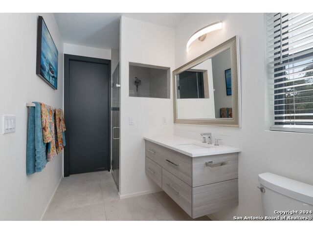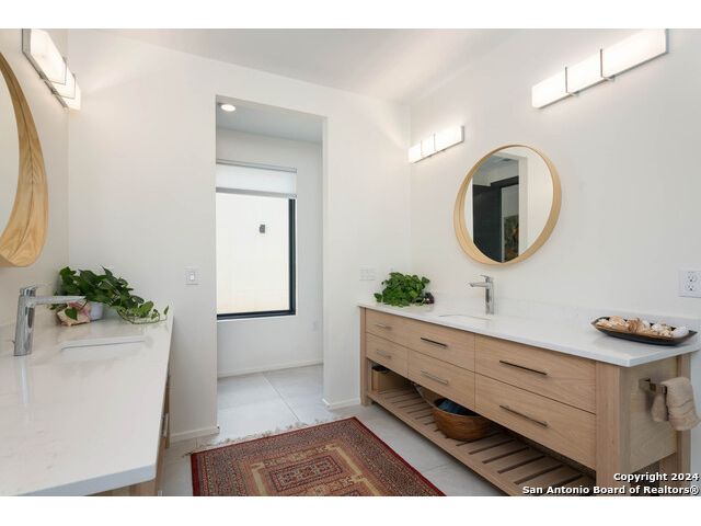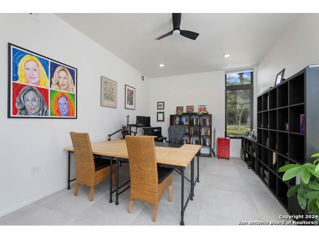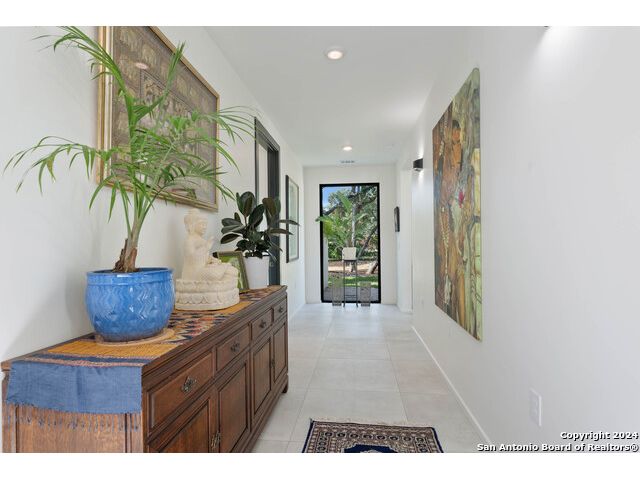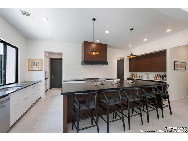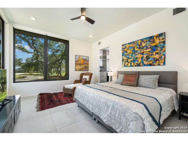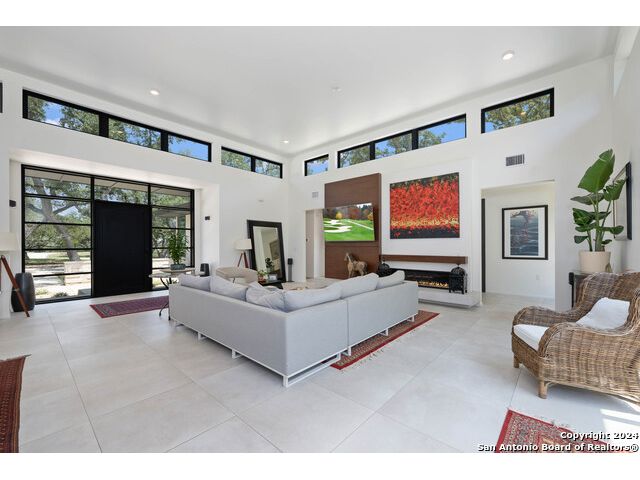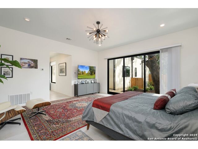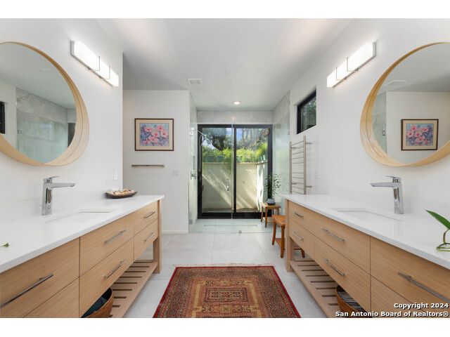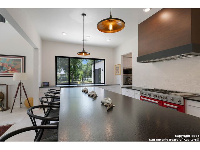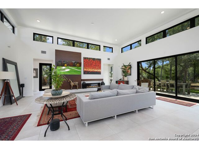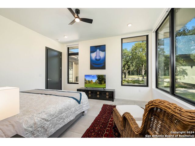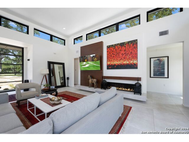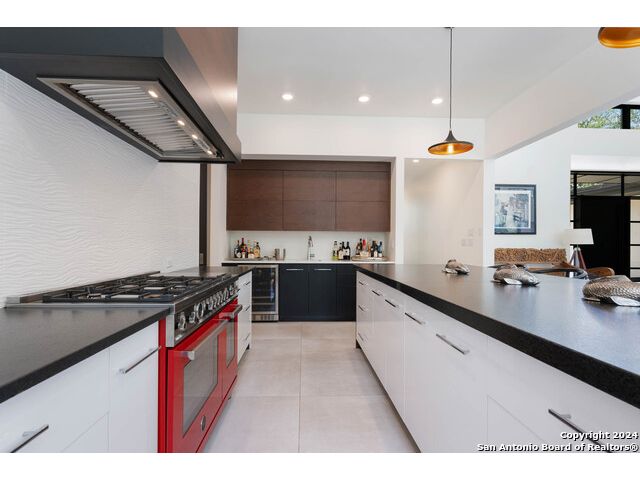 Nestled in the prestigious neighborhood of Shavano Park, this modern home exudes luxury and quality craftsmanship, while having wonderful unobstructed views off the front. Spanning a spacious layout, the main house features three bedrooms and three bathrooms, providing ample comfort and privacy. In addition, an attached casita offers a separate living area, bedroom, and bathroom, ideal for guests or extended family. The heart of the home is the kitchen, designed for both function and style. A large island serves as a central gathering spot, surrounded by custom cabinets and a sleek bar area. A standout feature is the Ferrari Red Bertazzoni range with double ovens, making a bold statement and offering high-performance cooking capabilities. Adjacent to the main kitchen, a prep kitchen and walkthrough pantry provide additional storage and workspace, perfect for entertaining and culinary endeavors. Work-from-home needs are met with a generously sized office space, offering a quiet and productive environment. The master suite is a private retreat, complete with a coffee bar, under-counter refrigerator, and access to a serene private courtyard. The master closet is thoughtfully designed with built-in wardrobe closets, ensuring ample storage and organization. Situated on a large, flat lot, the property is surrounded by over 60 mature trees, offering shade and natural beauty. This is one of the most desirable lots on one of the most desirable streets in Shavano Park, this home blends modern luxury with tranquil living, making it an exceptional choice for those seeking both comfort and sophistication.
