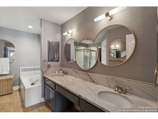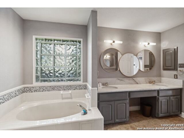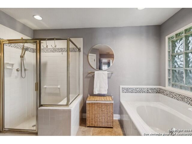Welcome to your dream home at 14819 River Gln N in San Antonio, TX 78216! This exquisite one-story residence offers a perfect blend of comfort, style, and convenience in a prime location. You'll love the brand new AC unit and furnace, ensuring year-round comfort, while the newly replaced window glass (8) enhances both energy efficiency and curb appeal. Step inside to find freshly painted interiors, all enriched by elegantly updated spaces. The home features stunning marble countertops that elevate the aesthetic of the kitchen and bathrooms, and with no carpet-just beautiful tiled floors throughout-you'll enjoy easy maintenance. High ceilings create an open and airy feel, while landscape atriums provide serene outdoor spaces perfect for private relaxation. The home is energy-efficient with upgraded exterior lighting, including solar front lights, and a full-functioning sprinkler system to keep your lawn thriving. Additionally, structural upgrades such as reinforced roof rafters and supported chimneys offer peace of mind, making this home as durable as it is beautiful. Located in the highly regarded NEISD school district and conveniently near shopping and dining, this property truly embodies the best of San Antonio living. Don't miss the opportunity to make this delightful home yours-schedule your private showing today and discover the endless possibilities waiting for you at 14819 River Gln!