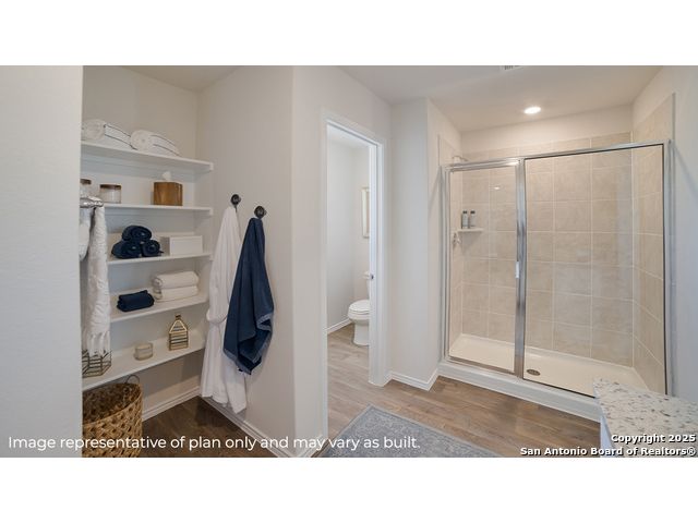 Step inside The Nicole plan, a two-story home featured in Riverstone at Westpointe in San Antonio, TX. Featuring 2 classic front exteriors, 4 bedrooms, 3 full baths and a 2-car garage, this floor plan is sure to turn heads. The Nicole offers 2473 square feet of comfortable living and includes a full bathroom and bedroom located right off the foyer that is perfect for guests. Continue down the hall to find an open concept plan with the family room opening to a gourmet kitchen and dining room. The kitchen includes quartz counter tops, stainless steel appliances, shaker style cabinetry and a spacious corner pantry. A kitchen island overlooks the living room and includes a deep, single basin sink and a breakfast bar, perfect for fast mornings on the go. The wide, inviting staircase leads to a spacious game room, utility room, main bedroom suite, two secondary bedrooms with carpet flooring and spacious closets and third full bathroom. Your private main bedroom features an attached ensuite bathroom built with plenty of storage space, a walk-in shower and a separate water closet for the toilet. The grand walk-in closet is a stand-out feature of The Nicole floor plan, complete with plenty of windows for natural lighting. Additional features of The Nicole include sheet vinyl flooring in entry, living room, and all wet areas, quartz counter tops in all bathrooms, and full yard landscaping and irrigation. This home includes our HOME IS CONNECTED base package. Using one central hub that talks to all the devices in your home, you can control the lights, thermostat and locks, all from your cellular device.