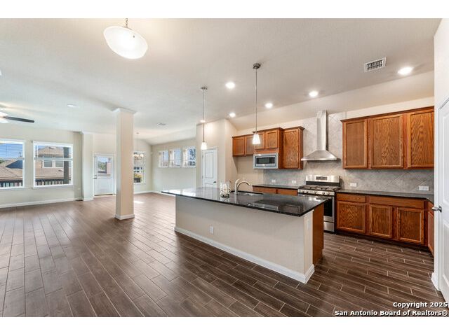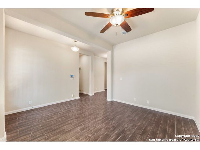 Exceptional Weston Oaks Home with Assumable VA Loan! Take advantage of a rare assumable mortgage (with lender approval and qualified down payment) offering excellent terms and long-term savings. Located on a quiet cul-de-sac in sought-after Weston Oaks, this well-maintained one-story features ~2,250 sq. ft., 3 bedrooms, 2 baths, a dedicated office space, and an oversized 2-car garage with heavy-duty storage shelving. Upgrades include new carpet, custom finishes, and large walk-in closets. The open layout leads to an entertainer's backyard with a covered patio, outdoor fans, epoxy flooring, and a surround-sound system ready for easy hookup. Solar panels will be paid off, giving you energy efficiency with no loan attached. Additional highlights include a cozy fireplace and smart home security. Situated in top-rated Northside ISD and minutes from major highways, shopping, and dining, this home offers comfort, convenience, and an outstanding financing opportunity.