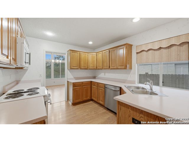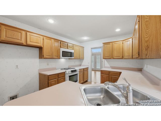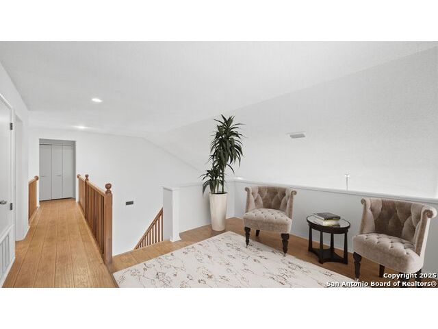 Step into a home where nostalgia meets possibility. Built in 1987 as the original model home of Olympia Oaks, this one-owner property offers vintage charm not often found in today's builds-vaulted ceilings, a two-sided balcony walkway, custom pink finishes, and beautiful natural light throughout. Set in an established neighborhood with mature trees and backing to a greenbelt, this home blends character, comfort, and convenience. Minutes from top-rated schools, major highways, Randolph AFB, and a variety of shopping and dining, it's a perfect canvas for buyers who value personality and potential.