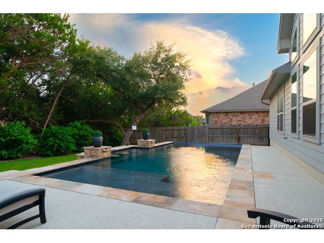 Welcome to this stunning two-story residence, thoughtfully designed for both elegance and everyday comfort. Featuring 4 bedrooms, two flex rooms, and 3.5 bathrooms, this home offers an abundance of space, versatility, and refined finishes throughout. Step inside to an inviting open floor plan highlighted by soaring ceilings and an abundance of natural light. The gourmet kitchen is at the heart of the home with an island, breakfast bar, and seamless flow into the living and formal dining areas. The primary suite, located on the first floor, serves as a private retreat with a spacious en suite bath and generous walk-in closet. An additional bedroom or office on the main level offers convenience and flexibility for your lifestyle. An expansive family/media room upstairs is ideal for movie nights, game days, or casual relaxation. Outdoors, a sparkling in-ground pool awaits, creating the ultimate space for summertime fun and year-round enjoyment. Whether you're hosting a backyard barbecue, lounging by the pool, or simply taking in the peaceful surroundings, this home's outdoor living is designed to impress. Additional highlights include a 3-car garage, ample storage, and a desirable layout that balances sophistication with functionality. From its inviting spaces to its thoughtful details, this home is a rare find and priced to sell! Schedule your showing today!