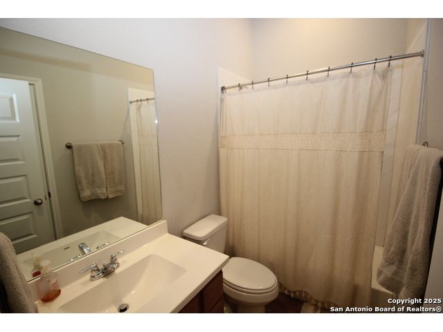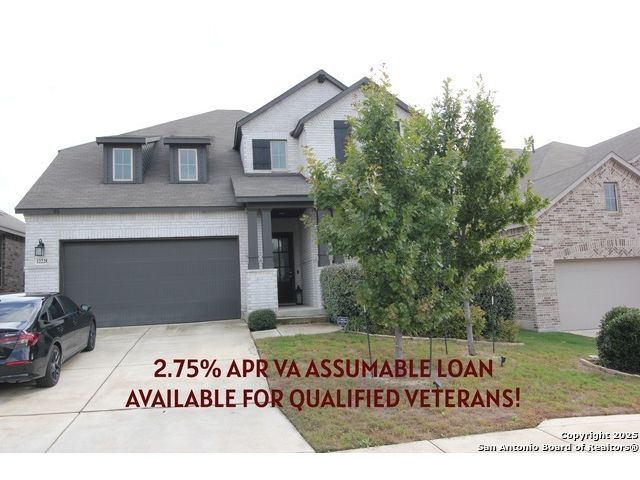 2.75% APR VA ASSUMABLE LOAN AVAILABLE FOR QUALIFIED VETERANS! Welcome to this meticulously maintained 2-story home in the highly desirable Davis Ranch community. With 3,049 sq. ft. of well-designed living space and high ceilings, this 4-bedroom, 4-full-bath home offers comfort, functionality, and timeless style. The open-concept layout features large windows that bring in abundant natural light, a spacious living area, and a covered patio-ideal for gatherings and everyday living. The chef-inspired kitchen offers generous counter space, stainless steel appliances, a tasteful tile backsplash, and a center island for casual dining. The primary suite is conveniently located on the main level and features a luxurious ensuite with a separate tub, walk-in shower, double vanity, and a large walk-in closet. A second bedroom with a full bath is also located downstairs-excellent for guests or multigenerational living. Upstairs, you'll find two additional bedrooms, a media room, and a generous loft that adds flexible living space. Additional upgrades include a water softener, reverse osmosis system, security system, and a 2-car garage. Outside, enjoy the covered patio and privacy fence, extending the home's living space. This exceptional property blends comfort, style, and location. Situated in one of the area's most sought-after communities and school districts, and conveniently close to restaurants, shopping, major highways, UTSA, and La Cantera. A solid, well-designed home with the space and features buyers want. Schedule your private showing today!