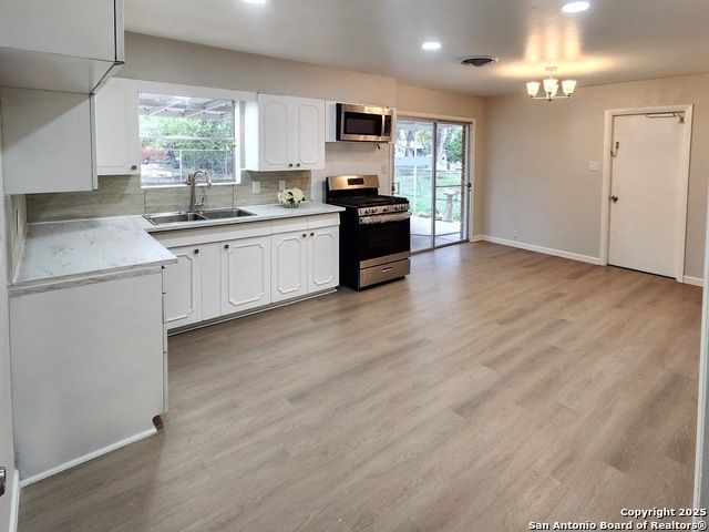 BEAUTIFULLY UPDATED HOME IN A PRIME SAN ANTONIO LOCATION! This charming 3-bedroom, 2-bath (both bathrooms are beautifully renovated, one bathroom with bathtub and the other with a walk-in shower, perfect for easy access and comfort). This residence features an open, modern layout with stylish finishes throughout. Enjoy a bright and spacious living area, a fully renovated kitchen, and abundant natural light. The generous backyard provides the perfect space for gatherings or future enhancements. Additional highlights include a one car garage and no HOA. Conveniently located near major highways, shopping, and schools. Move in ready and an excellent opportunity, whether it's your first home or your forever home!