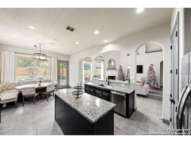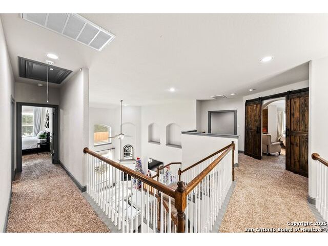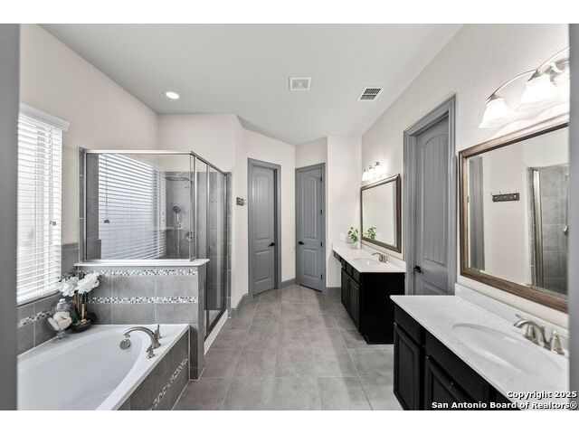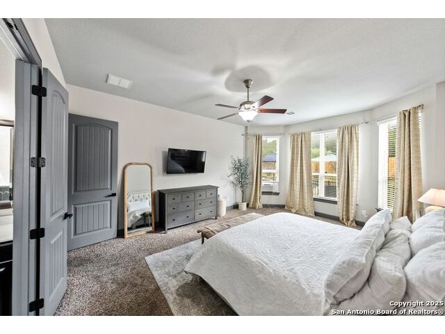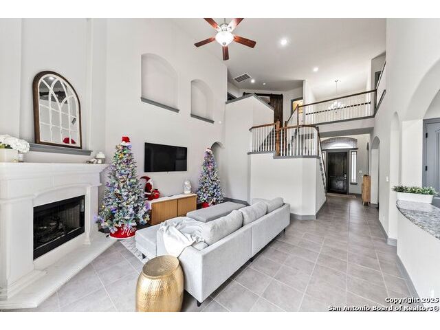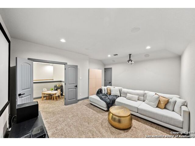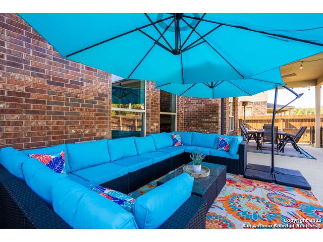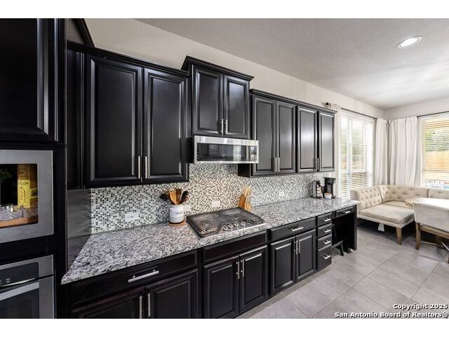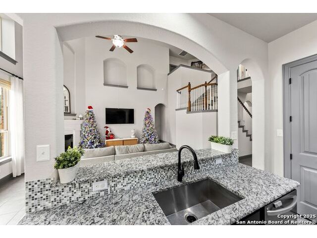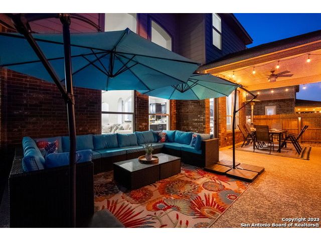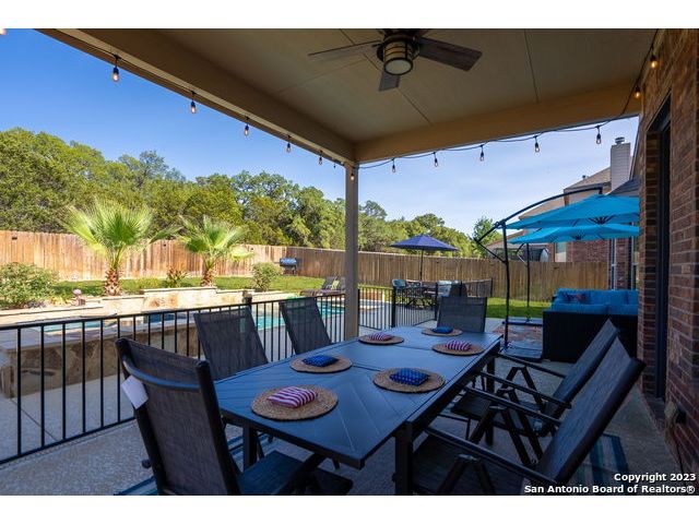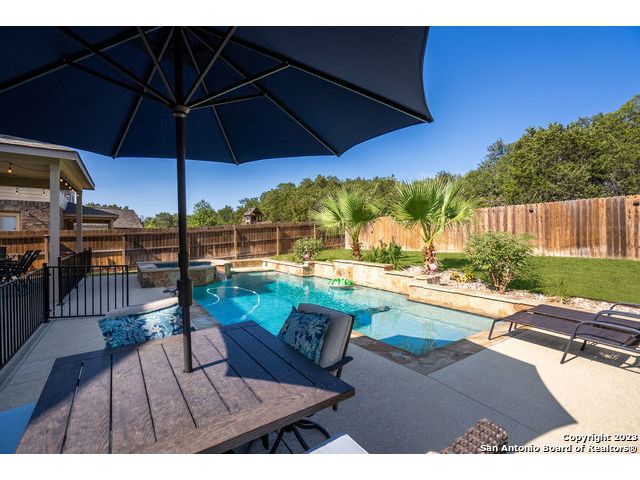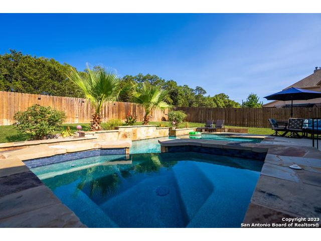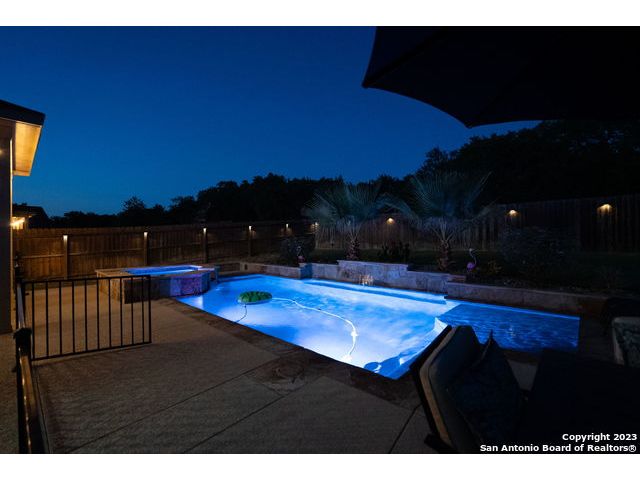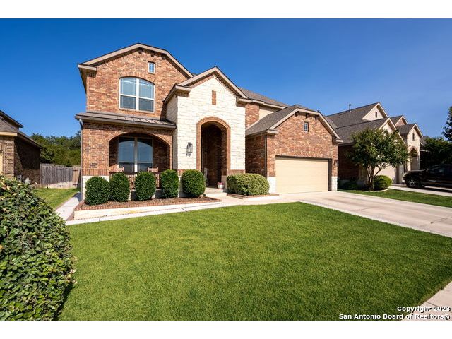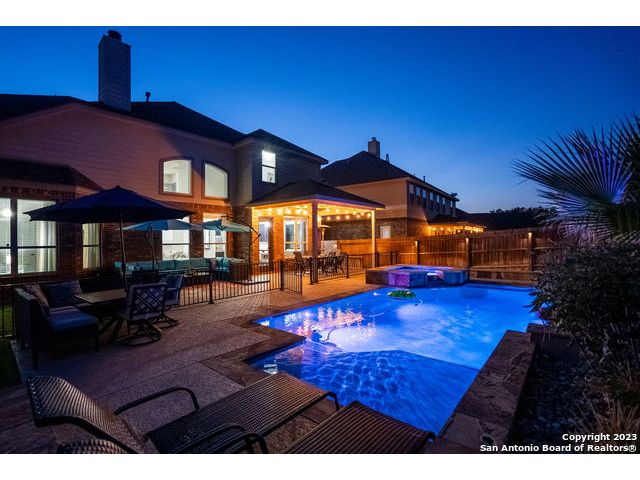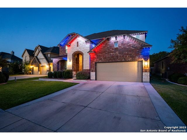 HEATED POOL & SPA. GREENBELT. CUL DE SAC. PERMANENT MULTI COLOR & DESIGN SOFFIT LIGHTS. 2-TON HVAC FOR GARAGE. MEDIA ROOM WITH 110in SCREEN. DUAL PRIMARY CLOSETS. WOW the upgrade list on this one! Imagine Living the Life...Designed with a relaxed contemporary style. This amazing residence is overflowing with the finest of everything. This home is situated on a greenbelt homesite located in a cul de sac with an open space view from your front covered patio. The LED Astoria built in lighting on the exterior offers an exciting new touch to every holiday or event. Enter your home through a beautiful, custom crafted 8ft front door boasting a newly remodeled laundry room and powder bath, freshly painted interior, color sealed designer tile, new fixtures and a cool contemporary finished trim, doors and crown molding throughout. Don't forget the entire downstairs has 8ft interior doors for a grand feel as you enter every room. Enjoy the elegantly styled kitchen that offers gas cooking, stainless appliances and solid maple wood cabinets positioned with an open concept and island. Brand new dishwasher, garbage disposal and microwave. The living space features a fireplace that is perfect to cozy up next to for the upcoming cool winter nights. The spacious master retreat offers separate vanities, dual walk-in closet & separate garden tub with shower. A media room comes with a 110in screen, 7.2 built in sound system with low pro entertainment center and receiver unit. The game room has been fitted with custom barn doors that lock and create an additional private space within the home. The garage has been fully renovated into a home gym with brand new epoxy floors covered in 1/2in Olympic lifting rubber mats all conditioned with a 2-ton Mini Split and wall mounted TV. A covered patio overlooks a generously sized backyard with a custom heated pool with water features and spa. A wrought iron fence encloses the main entertainment deck with patio extension. Coveted BISD. Easy access to IH10 and Medical Center. Close proximity to The Rim and La Cantera. Oh, did I mention the brand-new Lemon Creek development with an HEB and 117 acres of shopping, retail and restaurants less than 3 miles away!!! No city taxes and Resort style amenities to enjoy Tennis and Basketball to name a couple.