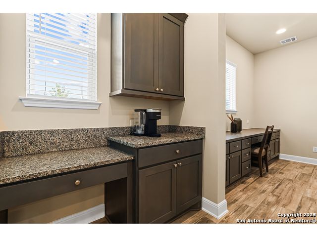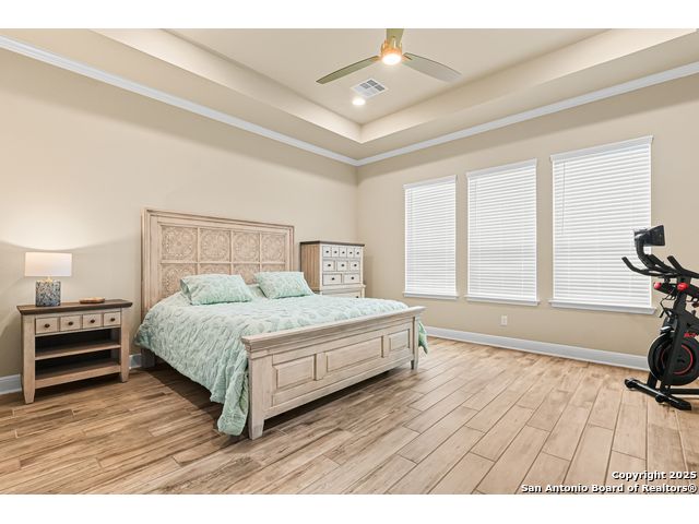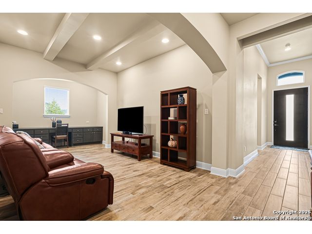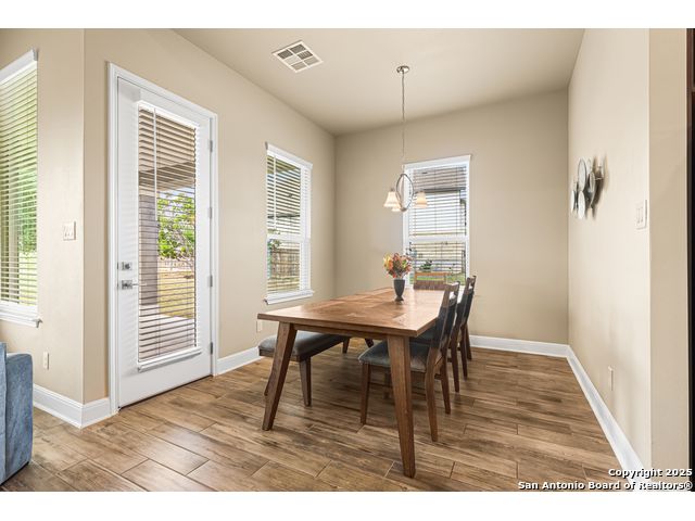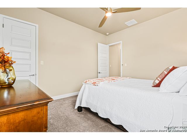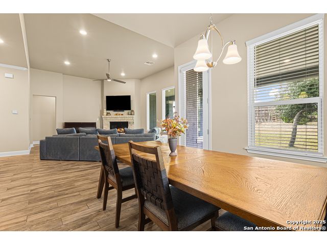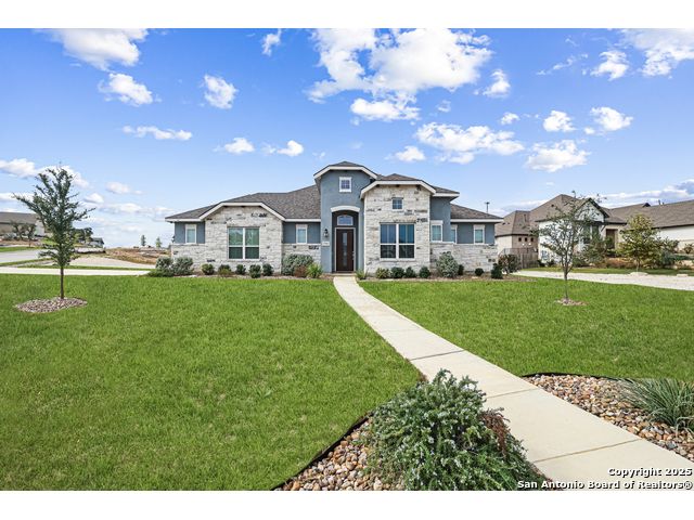 Note: Seller is currently offering 1.5% of sales price concession to be used either towards buyer closing costs or mortgage buy down! Discover an extraordinary opportunity in the prestigious Highland Estates. Nestled in the tranquil Texas Hill Country, this exquisite single-story residence, built in 2022 and maintained in impeccable condition, this home offers unparalleled luxury and comfort, situated less than 2 miles from US 281 and Borgfeld Drive. Spanning over 0.5+ acres on a prime corner lot, this home provides the perfect blend of privacy and seclusion, ideal for unwinding amidst stunning hilltop vistas. Step inside to be greeted by grand oversized doors and soaring ceilings, leading to a magnificent main living area adorned with a breathtaking stone fireplace. The chef's kitchen is a masterpiece of design, featuring five-burner gas cooking and beautiful stainless-steel appliances. The expansive 9-foot stone-wrapped kitchen island serves as a central gathering spot, perfect for family meals and entertaining. The home boasts a sophisticated split bedroom layout, with a luxurious primary suite that includes a lavish bathroom complete with dual vanities, a spacious glass shower, a relaxing soaker tub, and an expansive walk-in closet. Two additional bedrooms, each with its own walk-in closet, share a well-appointed bath and have easy access to a convenient half bath. A versatile "flex" room with vaulted ceilings and built-ins offers endless possibilities as a study, media/game room, or additional living space. Outside, a large covered patio invites you to enjoy the serene surroundings, with ample space on the expansive lot for future enhancements such as a pool, tennis, or pickleball court. Highland Estates is renowned for its wide roads and panoramic views, and its proximity to Comal County ISD's "A-rated" schools makes its an ideal place to live! 27103 Coltens Canyon is a must-see for discerning buyers seeking elevated Hill Country living-schedule your private showing before this exceptional property is gone.
