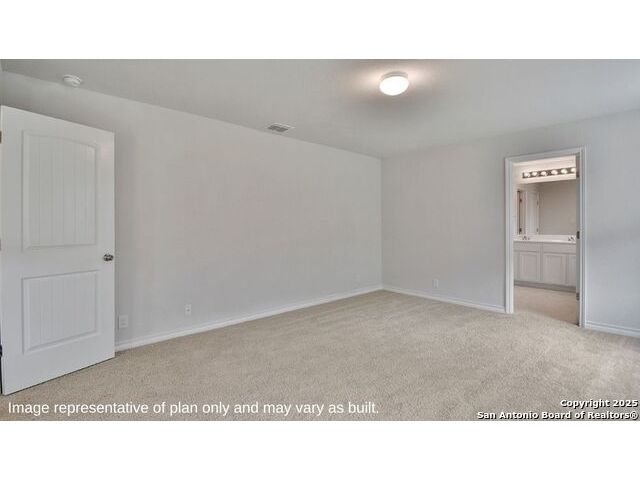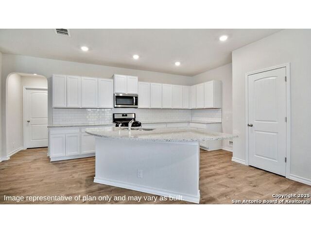 Welcome to The Knight, a new home offered at Riverstone at Westpointe in San Antonio, TX. Featuring 3 classic front exterior, 4 bedrooms, 2 bathrooms, 2-car garage and 1901 square feet of living space, this floor plan is sure to turn heads. Spacious, comfortable living greets you at the door with a long foyer leading to a decorative wall nook and a grand, open concept living room, kitchen and dining area. The kitchen is complete with beautiful quartz countertops, stainless steel appliances, classic white subway tile backsplash, and an oversized kitchen island with a deep single basin sink. Your blended living room and dining area feature luxury hard surface flooring and plenty of windows, creating a light and bright space for living and entertaining. The private main bedroom is located at the back of the home and features a large, relaxing ensuite bathroom complete with a separate tub and walk-in shower, dual vanities, a water closet, and spacious walk-in closet. All secondary bedrooms offer quality carpeted floors and a closet. These rooms are versatile! Use them as bedrooms, offices, work out rooms or other bonus spaces. Additional features include tall 9-foot ceilings, 2-inch faux wood blinds throughout the home, ceramic tile in the bathrooms and utility room, pre-plumb for water softener loop, and full yard landscaping and irrigation. You'll enjoy added security in your new home with our Home is Connected features. Using one central hub that talks to all the devices in your home, you can control the lights, thermostat and locks, all from your cellular device.