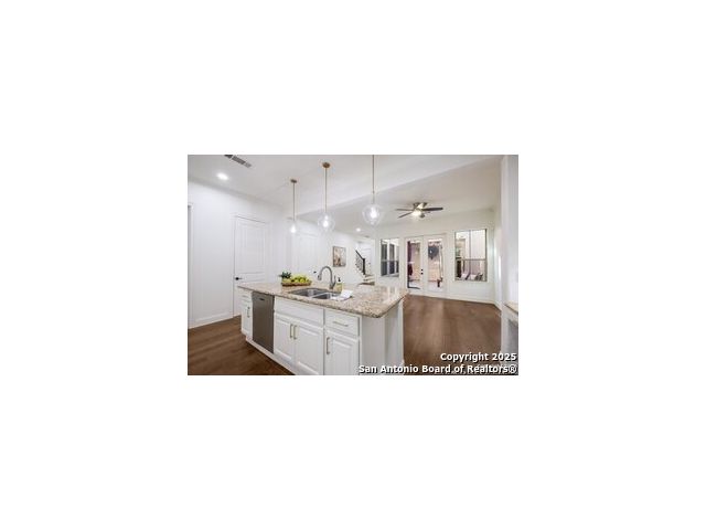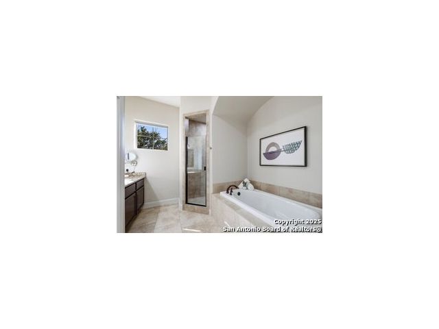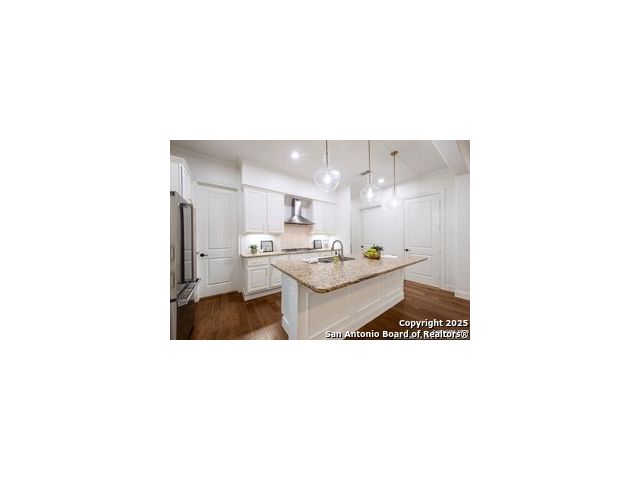 Come enjoy upscale living in this beautiful Shavano townhome that offers a timeless blend of classic elegance, modern comfort and maintenance free living. This stunning residence features wood floors throughout main level, amazing natural light, high ceilings, updated powder room, crown molding, custom window shades and incredible storage including a closet as an optional elevator shaft. The family room leading to yard boasts updated lighting/fan and wet bar with wine fridge, a game room includes 4X4' closet, media room/study with French doors overlooking the atrium and an oversized laundry room with sink and extra cabinetry - all of this makes the home effortlessly luxurious with unparalleled convenience. Secondary bedrooms with walk-in closets and ensuite bathrooms provide generous space for family and guests. The private, gated courtyard strung with whimsical lighting, cooling fan and massive umbrella is an entertainer's ideal layout for relaxing or hosting gatherings with doors leading to the dining room. Chef's kitchen is equipped with an enormous island, Viking appliances, "Costco" closet, new tile on the backsplash, 5-burner gas cooktop, convection oven, deep split sinks, coffee bar/desk area, custom cabinetry with pullout shelving, spacious walk-in pantry with container store buildout and reverse osmosis system. Primary suite boasts a romantic fireplace with seating area, outdoor balcony, customized dual closets with chandelier and spa like bathroom with large soaking tub, separate shower, individual vanities and mounted TV. Oversized garage with additional Viking refrigerator, water softener and epoxy flooring. Perfectly situated near the San Antonio International Airport, Medical District, most major highways, and moments from fine dining, shopping and downtown San Antonio. Zoned to outstanding NISD schools!