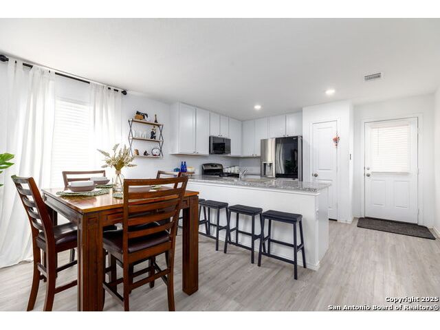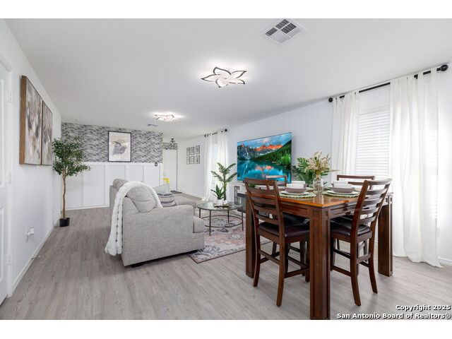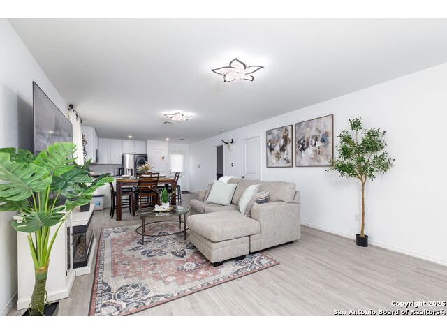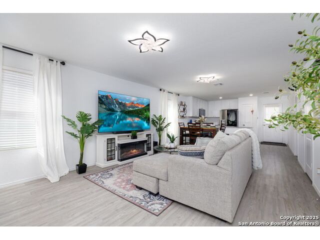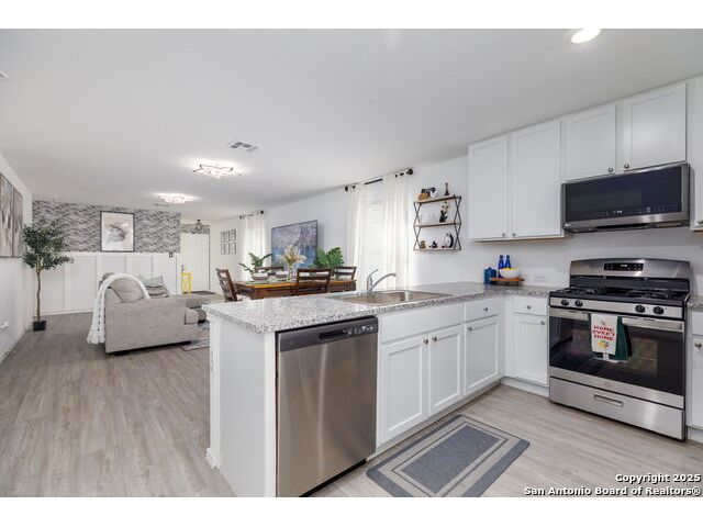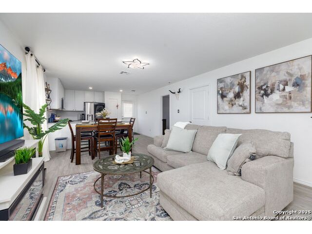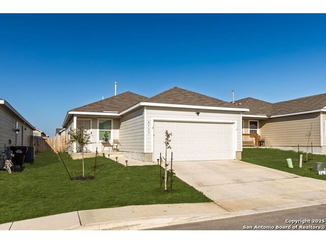 Welcome to this adorable three-bedroom, two-bath home in the sought-after Southton Meadows community on the southeast side of San Antonio! Built just two years ago by Lennar, this single-story gem offers modern comfort, style, and energy efficiency. Step inside to an inviting open floor plan with upgraded countertops, perfect for entertaining and everyday living. The spacious kitchen flows seamlessly into the dining and living areas, creating a warm and welcoming atmosphere.
