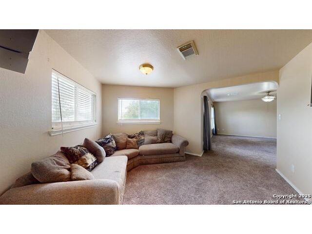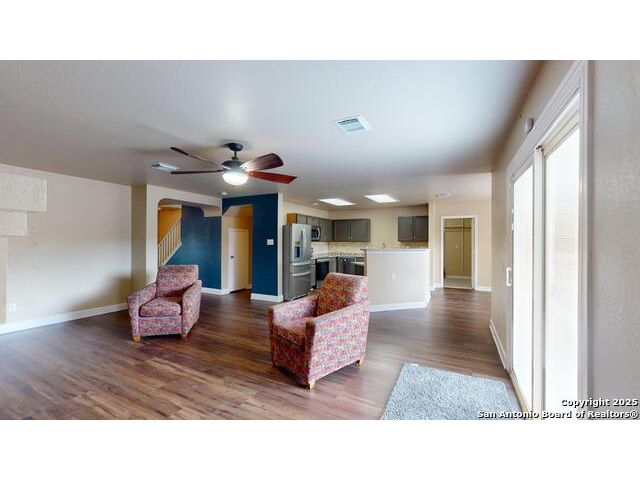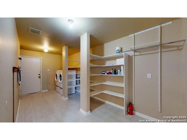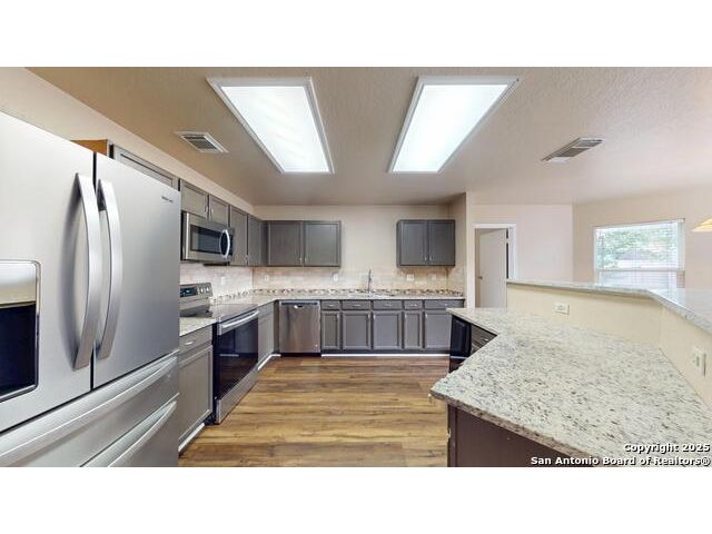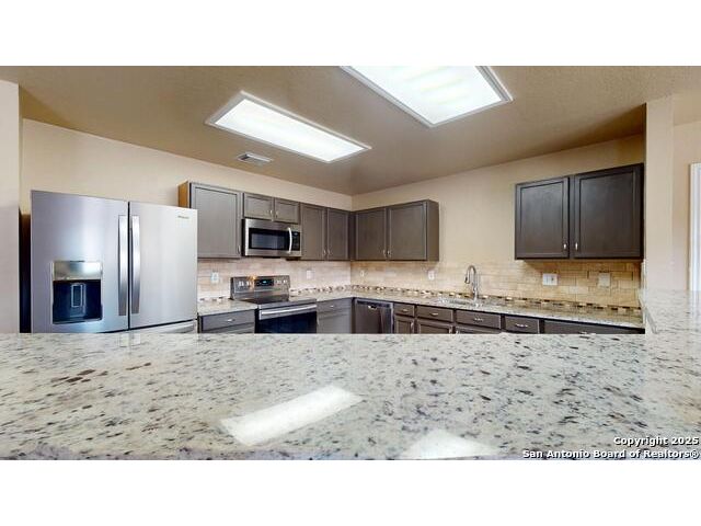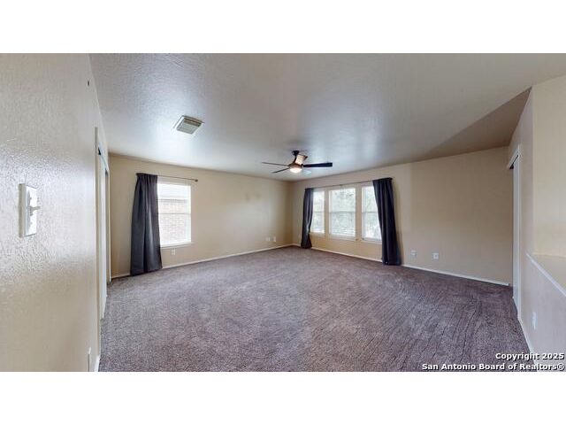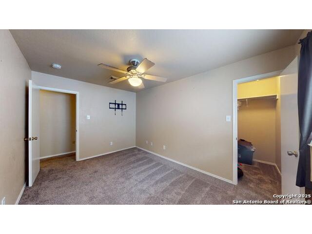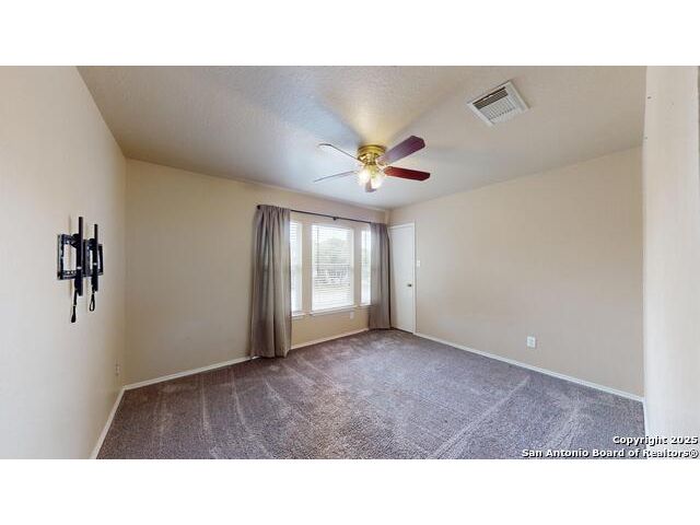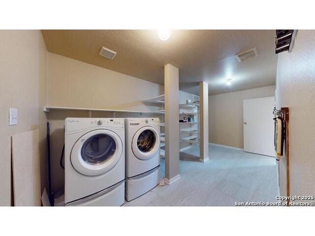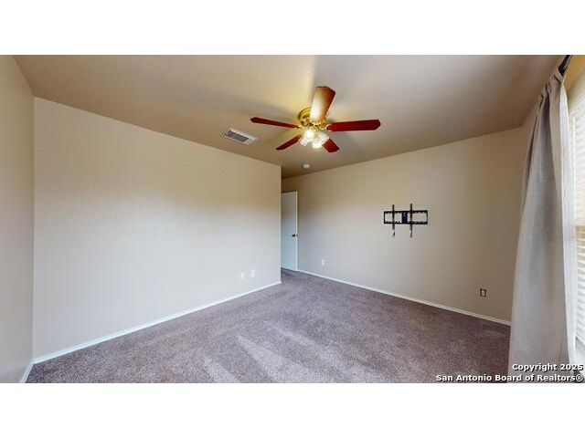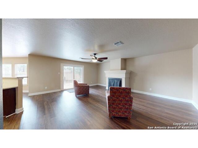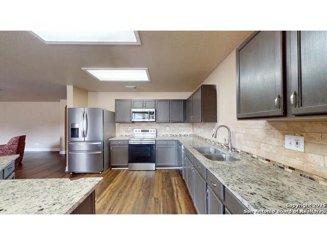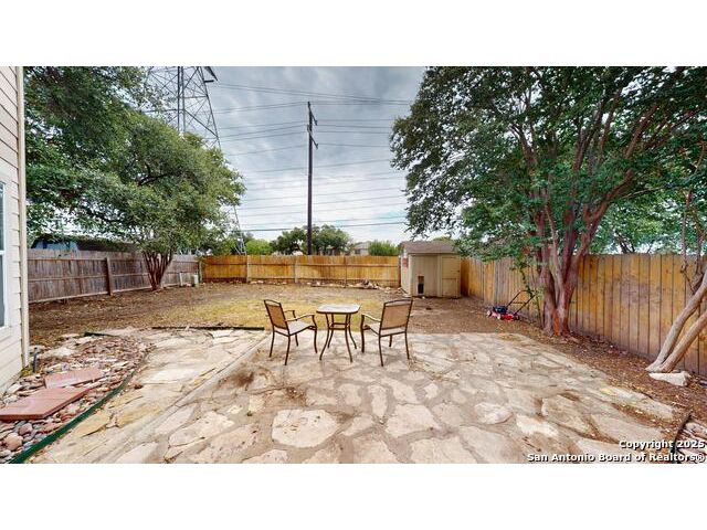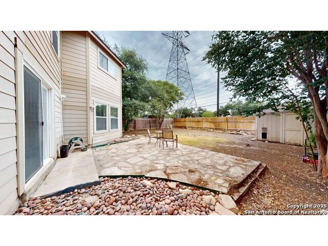 Ask about the VA assumable loan opportunity available to qualified buyers. Spacious, flexible living in Caracol Creek on San Antonio's growing Northwest side. This 2,856 sq. ft. two-story offers 3 bedrooms, 2.5 baths, and three separate living areas, giving plenty of room for dual living, work-from-home setups, or a dedicated media and game space. The open-concept island kitchen features a walk-in pantry and generous cabinet storage and flows directly into the main living area with fireplace for easy everyday living. Upstairs, a large game room anchors two secondary bedrooms and a full bath, while the oversized primary suite offers a remodeled bath with updated walk-in shower and basin plus a huge walk-in closet and attached flex room that works well as an office, nursery, or private retreat. Bedroom walls have some touch-up paint, and the home includes a refrigerator, stove, microwave, and newer model washer and dryer to simplify move-in. Outside, enjoy mature trees, a privacy-fenced yard, patio slab, storage shed, and dog run. Caracol Creek is an established community with sidewalks, playground, and courts, with quick access to Loop 1604, Hwy 151, and Hwy 90, convenient to Lackland AFB, shopping, dining, and schools.