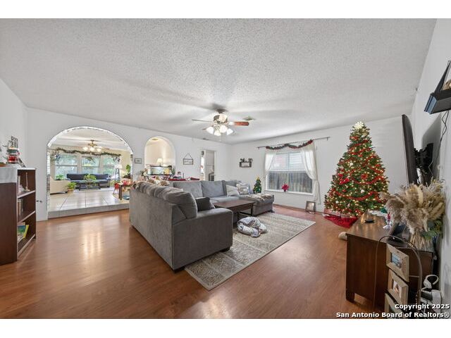 A beautiful single-story home in the desirable Longs Creek neighborhood with great curb appeal and great space for indoor and outdoor entertaining! A light, bright and spacious living room is among the highlights of this open floor plan home which features a massive primary bedroom, great eat-in kitchen and a beautiful custom terra tile arch that connects the two living areas! The spacious secondary living room/dining area features a picturesque accented wall perfect for the Holiday season! No carpet throughout the home! Refrigerator and washer/dryer will convey! Roof and water heater replaced in 2025! Pavers added out back for a great entertaining space! A must-see home in a great location!