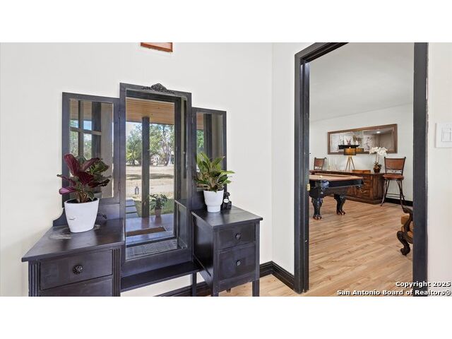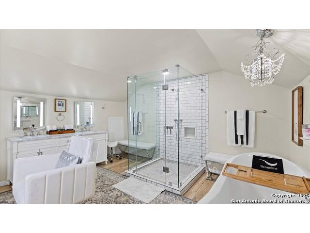 Front porch welcomes you to this gorgeous home with modern upscale finishes featuring 4 bedrooms plus office and 3 spa-inspired bathrooms. Entry foyer leads you to the formal dining area with built ins, Living/ game room, gourmet island Kitchen with gas cooking open to the Family room with wood beam ceiling, double sided fireplace, luxury wood laminate flooring, Quartz and marble countertops throughout, and spacious private backyard with In-ground pool, seating areas, and firepit. A separate entrance from balcony to the upstairs suite along with private fenced in backyard and own pool. Oversized garage, 2 driveways, and ample parking for a truck or boat. Property sits on 1 acre with 3 separate fenced in yards and two pools. Many updates and ready to make your own. Come and discover Woodlake subdivision with Lake McQueeney access boat ramp. Currently being used as a vacation rental and could be sold fully furnished, reach out for details.