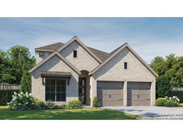 Welcoming entry framed by home office with French door entry. Island kitchen features a built-in seating space, 5-burner gas cooktop and a large walk-in pantry. Family room with three large windows extends to the dining area. Private primary suite with three large windows. Primary bathroom offers a French door entry, dual vanities, garden tub, separate glass enclosed shower and a large walk-in closet. Secondary bedroom offers a walk-in closet and a full bathroom. Second floor hosts a large game room and secondary bedrooms. Utility room. Covered backyard patio. Two-car garage.