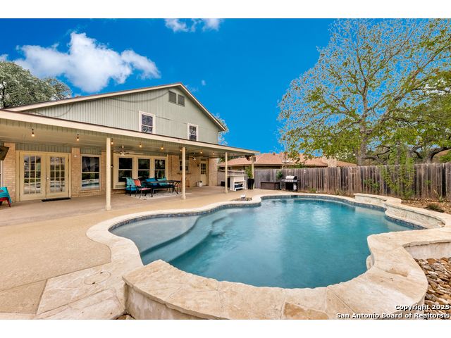 Gorgeous staycation home in coveted Braun Oaks! If you are looking for a spacious, sunny, home with a luxury feel, you will adore this property. This 3 bedroom, 2.5 bath property has been recently improved to include a new in ground backyard pool, cabana, chef's kitchen with granite counters, an upstairs spa bathroom, new roof, solar panels, water treatment system etc. Too many upgrades to mention. Keep warm in the winter by the living room fireplace, and swim all summer long. Come see it for yourself! Located on a quiet cul-de-sac with mature trees, this property has a stay at home resort vibe, perfect for families or people who enjoy entertaining in style.