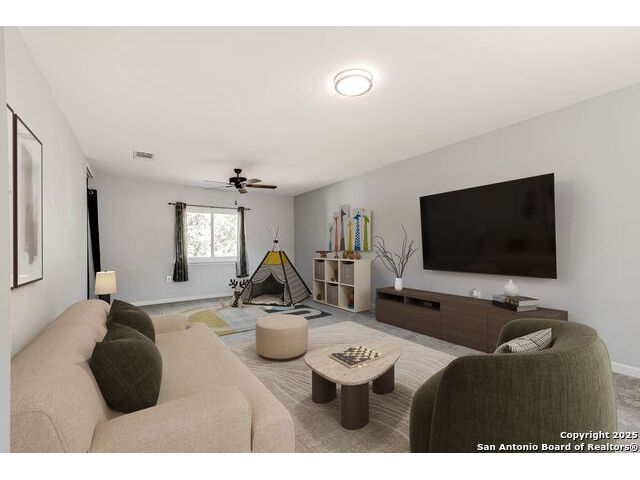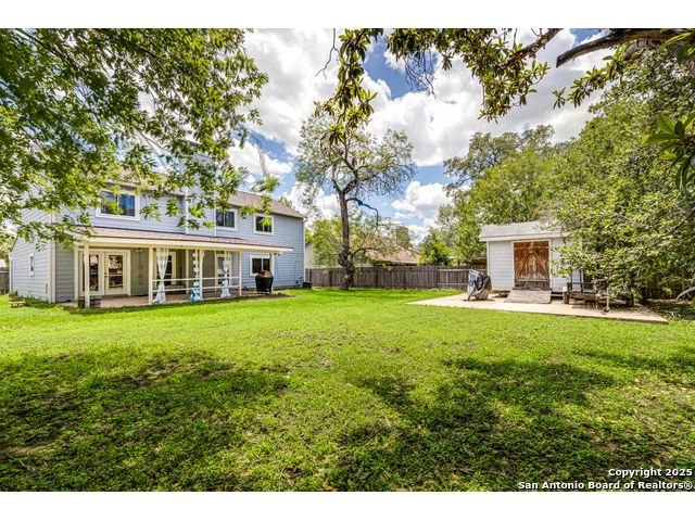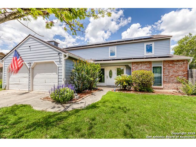 Move-in ready with major upgrades! This beautifully updated 2-story home sits on an oversized lot in a quiet, established neighborhood and offers a bright, open floor plan filled with natural light. Enjoy peace of mind with a brand-new roof, energy-efficient (paid off) solar panels, a new HVAC system, fridge, oven, stove top, dishwasher, water softener and new windows throughout! What more could you ask for? Step outside to a spacious covered back patio perfect for entertaining, and a large backyard complete with a storage unit. Inside, you'll find timeless hardwood floors, wainscoting and a chandelier in the formal dining room, and a dramatic floor-to-ceiling brick fireplace in the living area. The private owner's suite features double doors and a walk-in shower. A jetted tub adds a spa-like feel to the second bathroom. With generously sized secondary bedrooms, a massive upstairs game room, and a chef's kitchen featuring granite countertops, a stylish tile backsplash, and ample cabinetry-this home has it all. Don't miss your chance to own this upgraded gem!