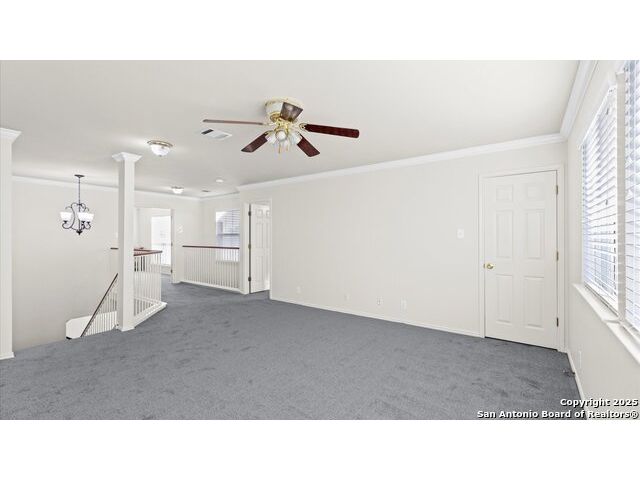 Come and See this beautiful property nestled in this Gated Community of Woodlake. Well maintained home that offers one of the Best price-per-square-foot. An inviting entryway that opens up to two spacious living areas, a formal dining room, and a cozy breakfast nook. Featuring fresh interior paint and brand-new carpet, this residence is move-in ready and designed to provide the ultimate living experience. The spacious floor plan includes high ceilings and large windows that flood the home with natural light, creating an inviting atmosphere for both relaxation and entertainment. A beautifully appointed kitchen with ample cabinetry and plenty of counter space-perfect for cooking, entertaining, and everyday family. All three generously sized bedrooms are located upstairs. The backyard offers both privacy and functionality, and a conservatory with a multi-purpose room that adds function and beauty to your property. Enjoy easy access to major highways and proximity to Fort Sam Houston and Randolph AFB, making it ideal for military personnel or commuters. Its priced to sell quickly!!!