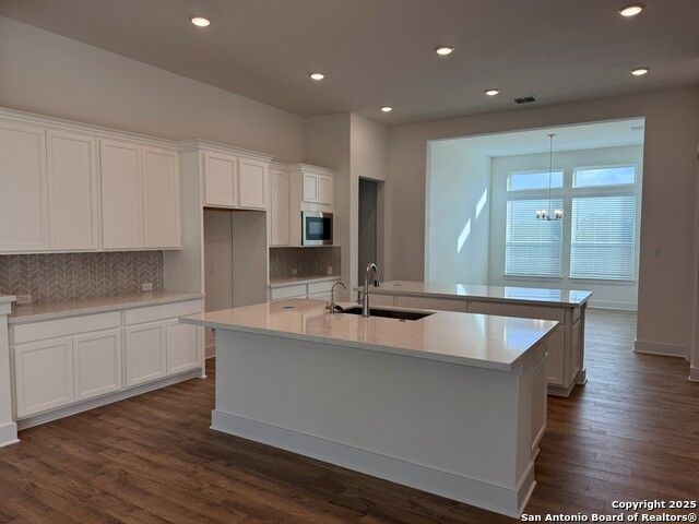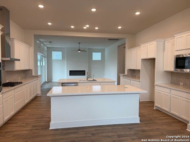 Move in Ready! This home sits on an oversized corner lot with a Side Entry Garage. Enter the home through an impressive 8' Door to a grand Foyer with high ceilings that sets the tone for the home. Continue on to the spacious Family Room, seamlessly connected to open concept luxurious chef's kitchen with two large islands each with Breakfast Bars. Enjoy a spacious separate Dining area off the Kitchen. The expansive Family Room accesses the Covered Rear Patio through an expansive sliding door. A generously sized back yard ideal for barbeques, birthday celebrations or quiet evenings in your private outdoor space. The main level is similar to our furnished Adelaide model in the community. The second level enjoys a large Game Room, a 5th Bedroom and Full Bath.
