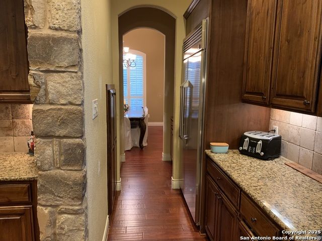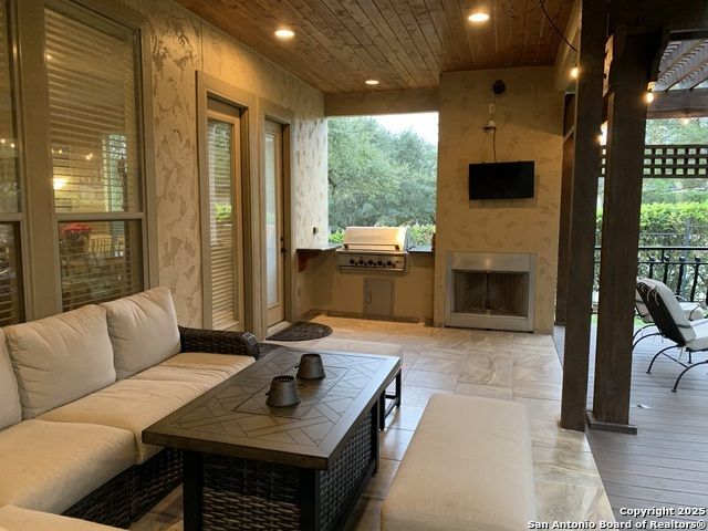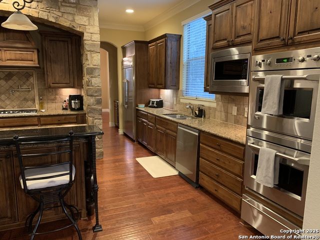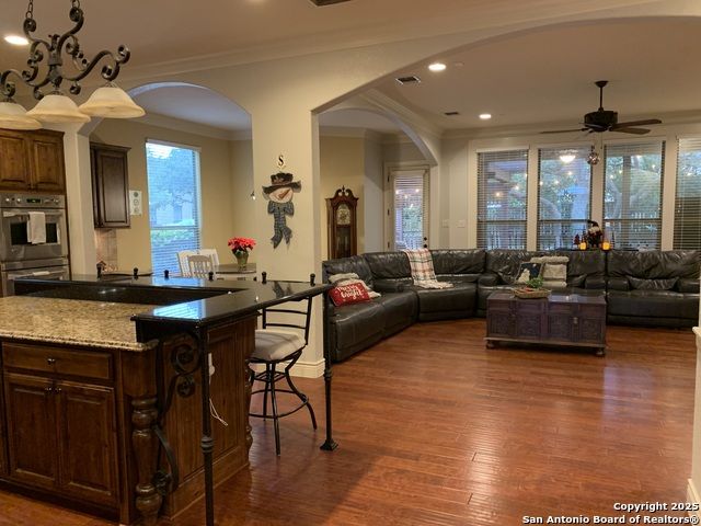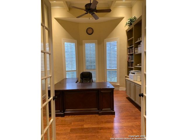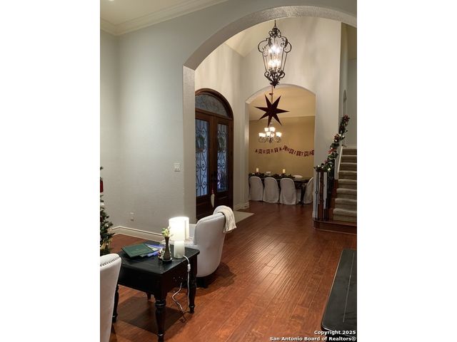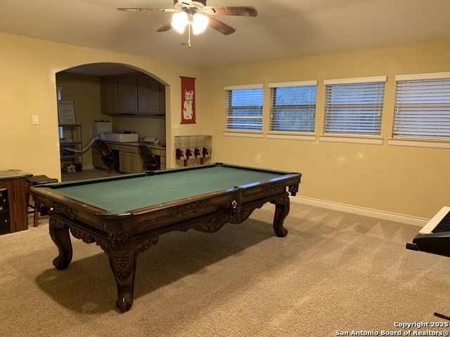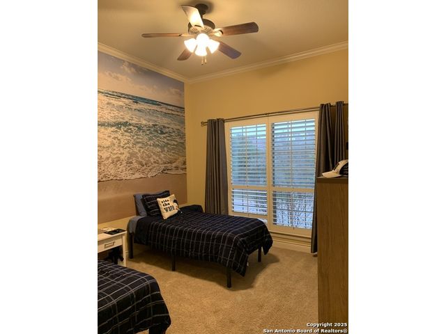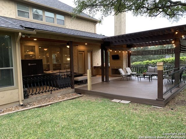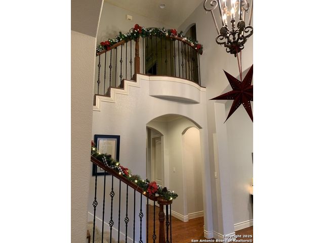 Stop looking any further! You just found it. Situated in a small quiet gated community. This dream-like two-story home offering abundant storage space and style in a master-planned, resort-style community. Come inside and you're greeted by a vast foyer with a breath-taking staircase that feels bright and open, leading up to an upstairs recreation and media room area. The upstairs which has a huge game room with an included pool table and ques. A media room with room for any large family. A separate open study area for the kids and the computer stations. There are all sorts of possibilities and this is beyond comparison. There is a kitchen and butler's pantry which provides comfort and efficiency to the heart of the home - a kitchen made for cooking and gathering, with an island the size of Oahu. Complete with built-in stainless appliances, gas cooking, and tons of cabinet space. The kitchen then opens into the fireplace equipped family room. The primary suite is privately situated downstairs and feels like a vacation get-away; featuring a large walk-in closet and a spa-inspired bath with separate vanities, a whirlpool garden tub, and an oversized walk-in shower that you'll fall in love with. Outside, the beautifully maintained, oversized yard and deck offer so much potential - an outdoor cooking area and fireplace make a perfect backyard retreat, put in a pool, design the outdoor space of your dreams, or do all of the above. Don't forget the huge 3 car garage and extra large driveway. Park your RV or extra room for guests. Another downstairs bedroom with full bath for guests or live-in care takers. Quick access to HEB shopping and to the many amenities in North Central San Antonio area.