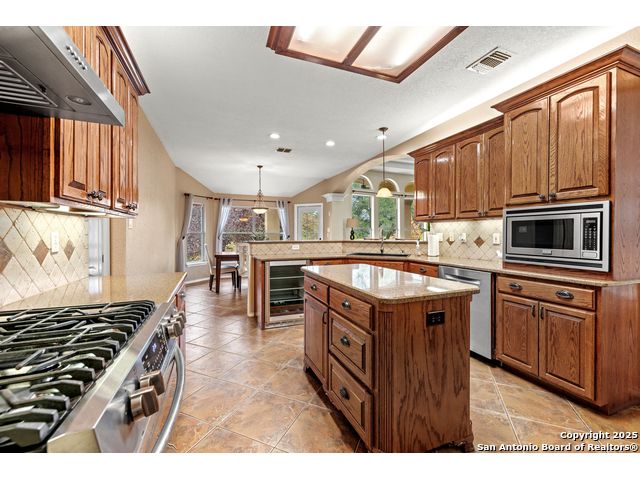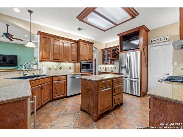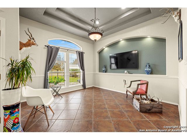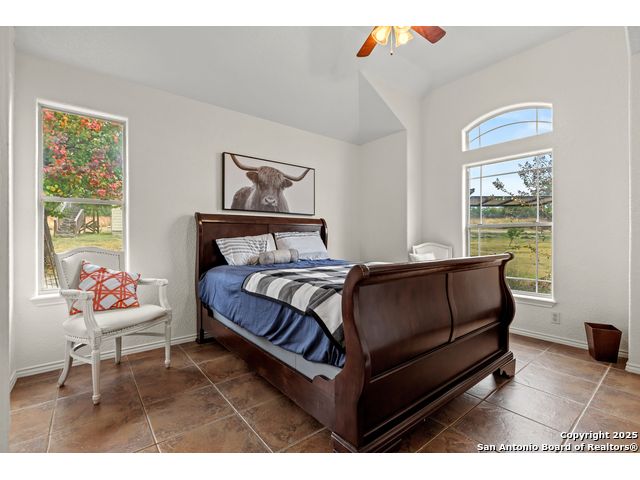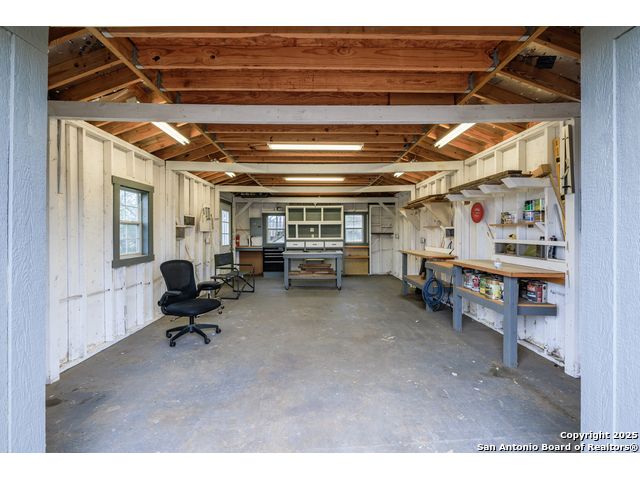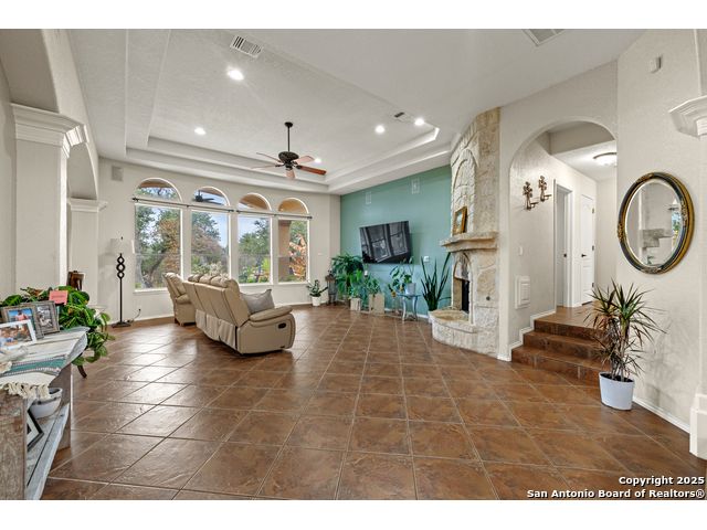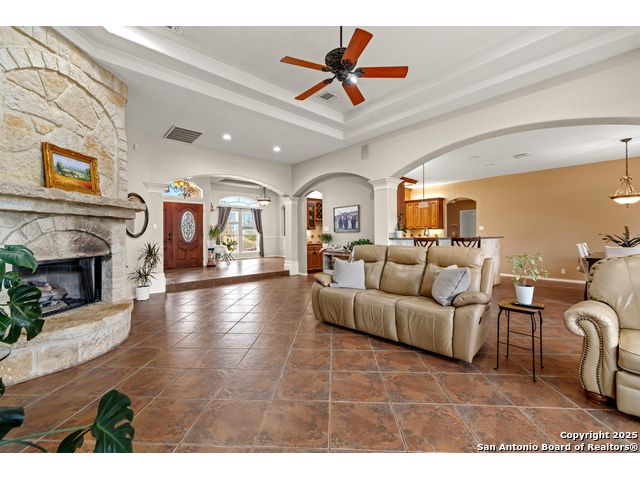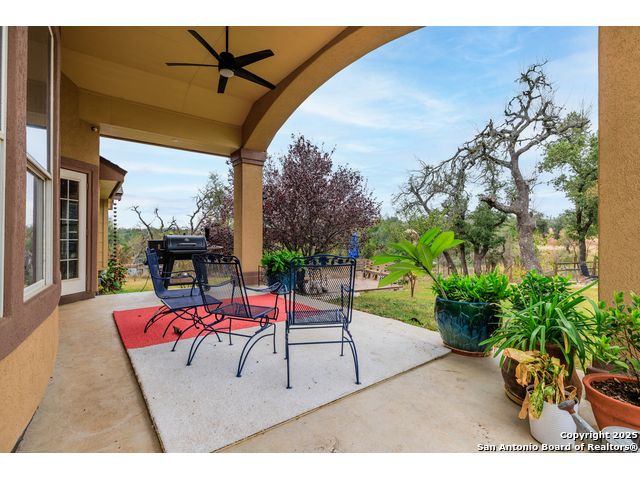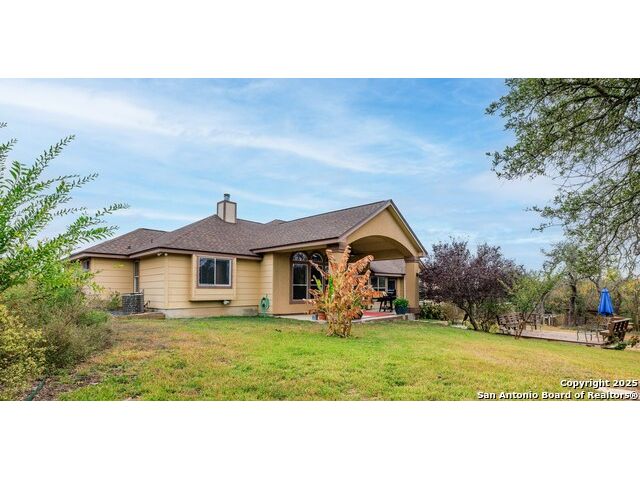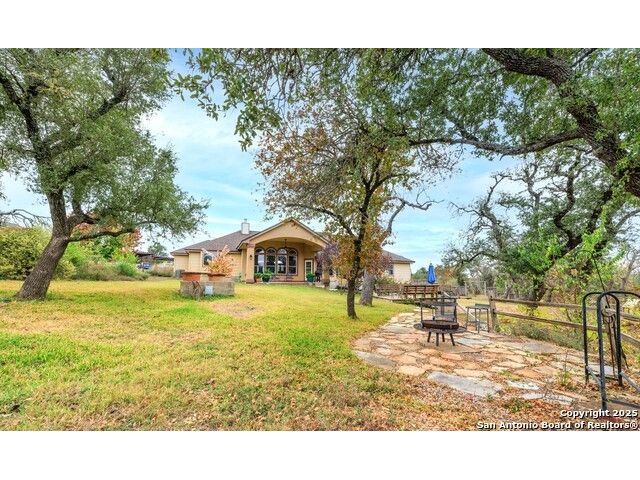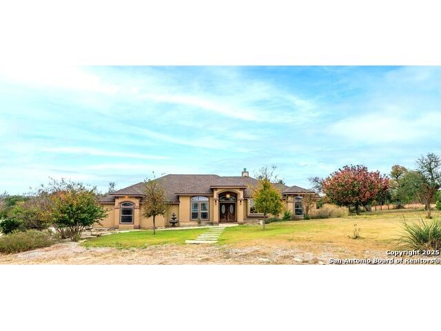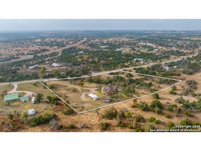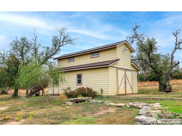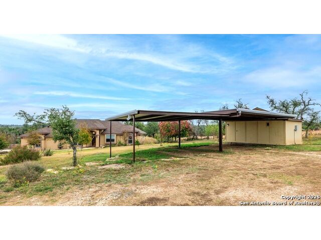 Situated on 6.29 acres along a paved county road just 5.1 miles from Fredericksburg, this inviting stucco home offers generous space, practical amenities, and country view. Custom built in 2004 and measuring 2,396 square feet (per GCAD), the residence features high ceilings throughout, creating an open and airy feel. The floor plan includes 4 bedrooms, 2 baths, a comfortable breakfast area, and a dedicated dining area, all centered around a spacious family room with a gas log fireplace and charming bay window. The well-designed kitchen offers an island, abundant cabinet space, granite countertops, a propane range, and a walk-in pantry. The master suite includes a large window seat, a bath with double sinks, a jetted tub, a separate shower, and a walk-in closet. Additional conveniences include a 2-car attached garage, a 4 car detached carport, a workshop, and a tool barn. Outdoor living is enhanced by a back covered patio overlooking a cross-fenced pasture accented by unique limestone outcroppings and a wet-weather creek. The property is fully fenced and cross-fenced, offering versatility for a variety of uses.