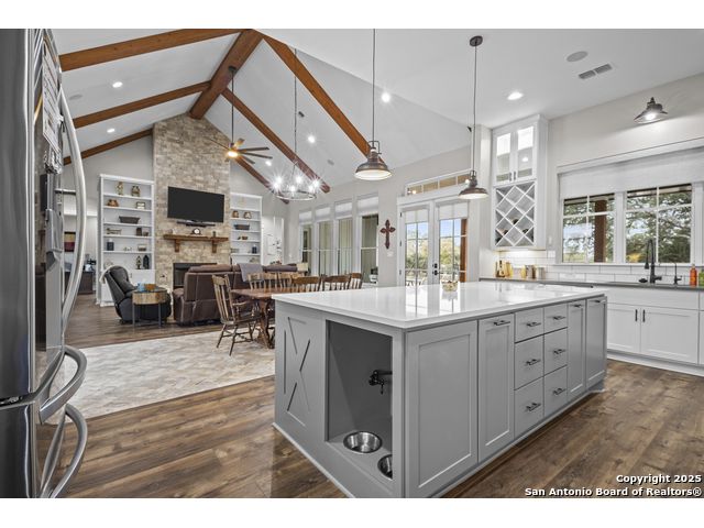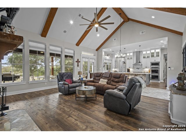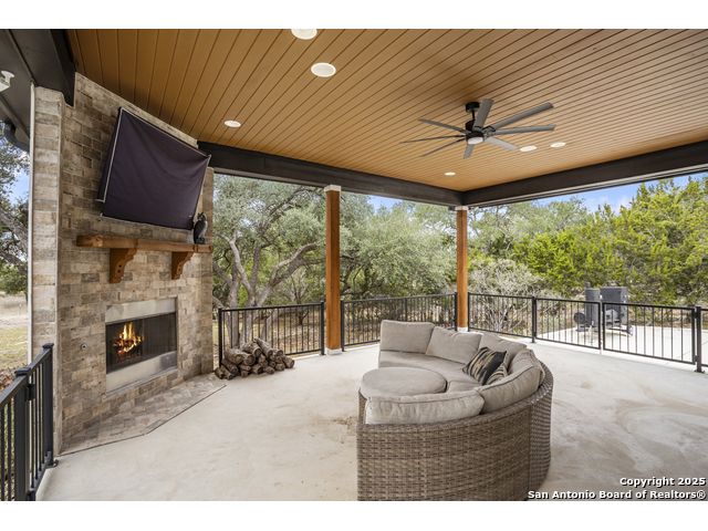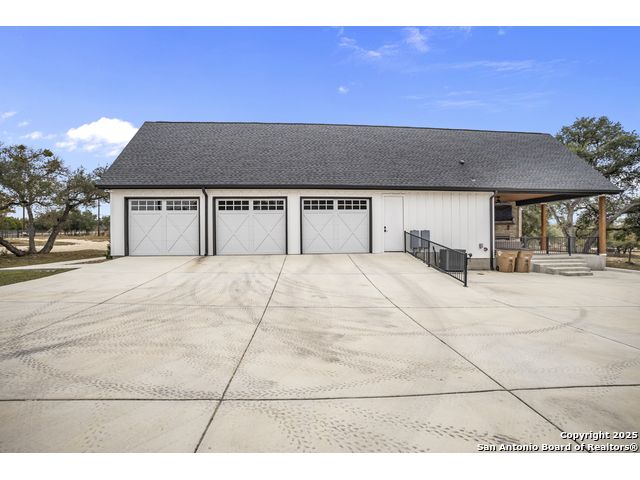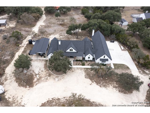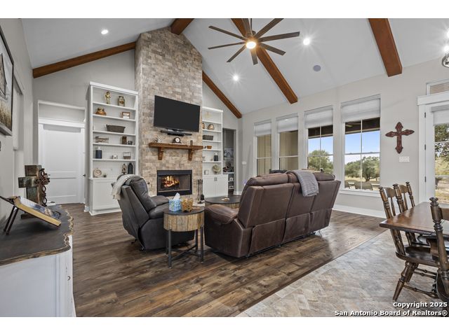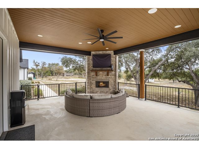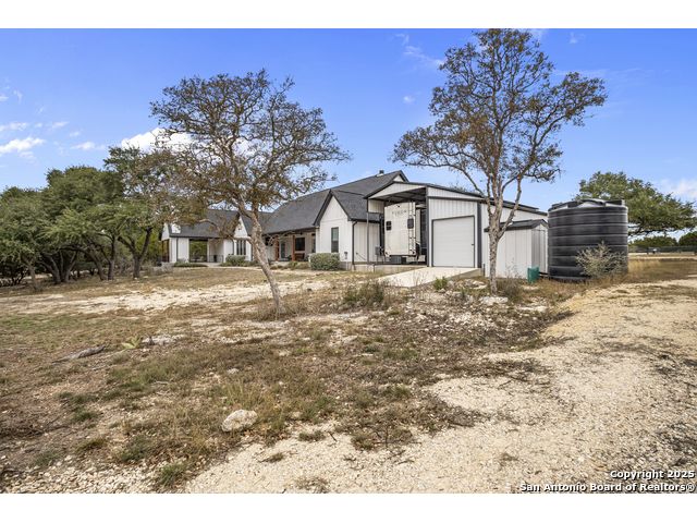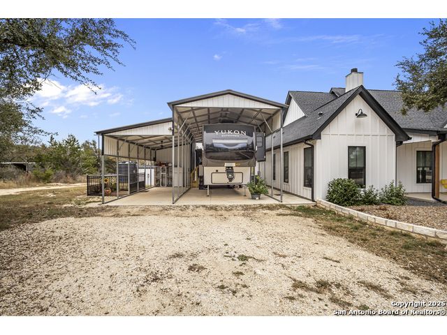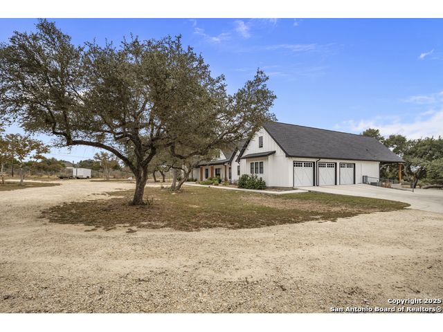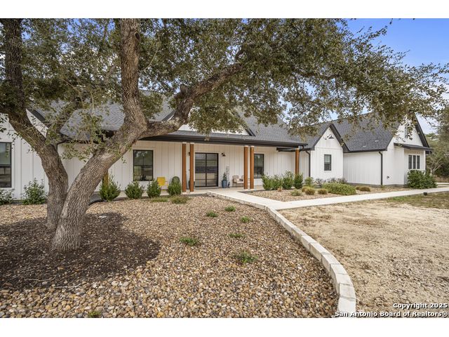 Welcome to your Hill Country haven in beautiful Boerne, Texas. This impressive 3 bedroom, 3.5 bath home offers 2,499 square feet of comfort, function, and warm hospitality. The spacious island kitchen is the heart of the home, and it opens into a large, airy floor plan that is perfect for gatherings, daily living, and relaxed entertaining. The home features ceramic tile and LVP flooring throughout, creating a clean, cohesive, and low maintenance interior. The oversized master suite feels like a private retreat. It includes a full bath with double vanity, a separate shower and tub, and two generous walk in closets. A dedicated office provides a quiet place to work or unwind. Outdoor living is truly special here. The covered patio features a fireplace and ceiling fan, creating an inviting year round space for relaxing with friends or enjoying peaceful evenings. The large backyard includes carports, a shed, and a 24 by 36 horse stable with 2 stalls, 1 tack room, a shop, and a 12 by 24 center aisle, giving you space for horses, storage, and equipment. The RV amenities are exceptional with a 30 by 55 RV cover that includes parking, storage, and full hookups, along with a matching metal design that complements the property. There is also a secure black iron fenced area that includes lighting, outlets, a ceiling fan, and a 15 by 8 storage room with a roll up door. Pet lovers will appreciate the built in dog run with pet turf and a climate controlled 10 by 8 pet room with a doggie door. Utility features include spray foam insulation in the exterior walls and attic, a spray foamed well house, 6 inch exterior studs, and wiring ready for an electric car. The home has a transfer switch installed for generator backup, soffit lighting and plugs, five hose bibs, and is pre plumbed and pre wired for an outdoor kitchen and a hot tub. The property is fenced and cross fenced with two automatic front gates. This allows plenty of room for horses, RVs, hobbies, or a flexible outdoor lifestyle. Living in Boerne means enjoying the charm of a Hill Country town known for historic streets, local shops, parks, and a relaxed community feel. The location blends natural beauty with everyday convenience, giving you the best of peaceful living with easy access to amenities. This home offers space, comfort, and modern upgrades along with a lifestyle that feels both welcoming and elevated. It is a rare find for anyone seeking room to grow while enjoying the beauty and tranquility of Boerne.