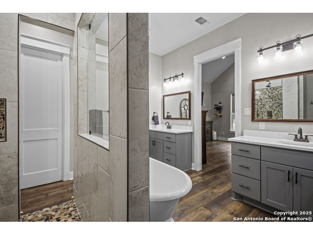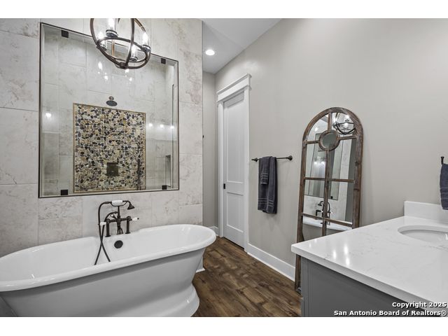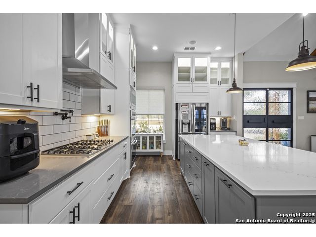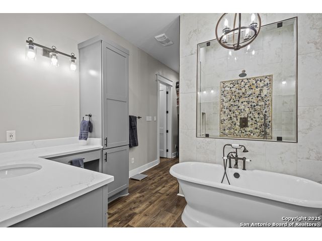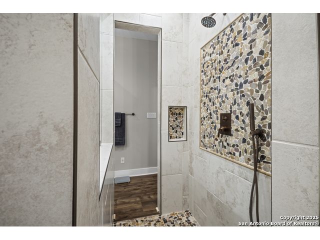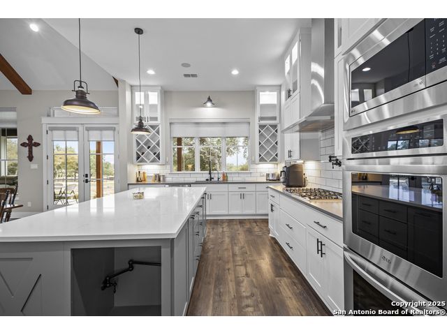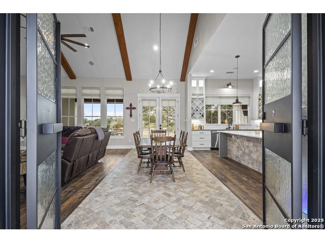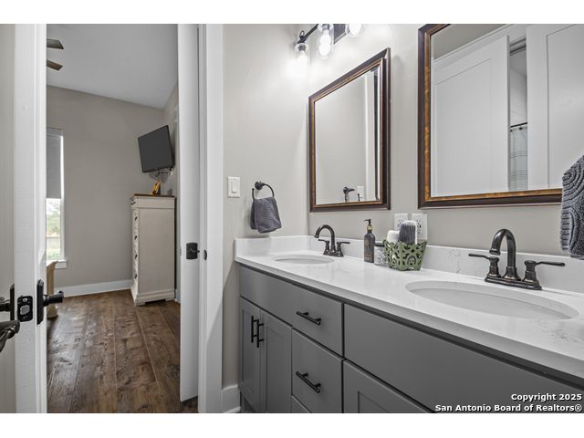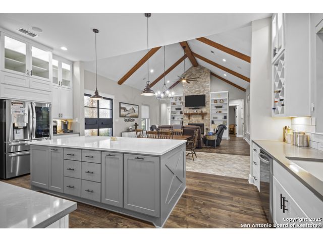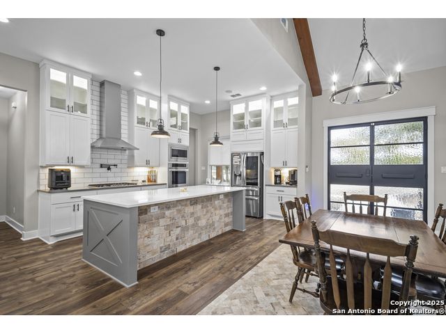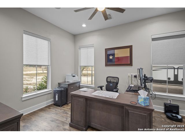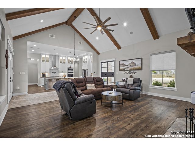 Welcome to your Hill Country haven in beautiful Boerne, Texas. This impressive 3 bedroom, 3.5 bath home offers 2,499 square feet of comfort, function, and warm hospitality. The spacious island kitchen is the heart of the home, and it opens into a large, airy floor plan that is perfect for gatherings, daily living, and relaxed entertaining. The home features ceramic tile and LVP flooring throughout, creating a clean, cohesive, and low maintenance interior. The oversized master suite feels like a private retreat. It includes a full bath with double vanity, a separate shower and tub, and two generous walk in closets. A dedicated office provides a quiet place to work or unwind. Outdoor living is truly special here. The covered patio features a fireplace and ceiling fan, creating an inviting year round space for relaxing with friends or enjoying peaceful evenings. The large backyard includes carports, a shed, and a 24 by 36 horse stable with 2 stalls, 1 tack room, a shop, and a 12 by 24 center aisle, giving you space for horses, storage, and equipment. The RV amenities are exceptional with a 30 by 55 RV cover that includes parking, storage, and full hookups, along with a matching metal design that complements the property. There is also a secure black iron fenced area that includes lighting, outlets, a ceiling fan, and a 15 by 8 storage room with a roll up door. Pet lovers will appreciate the built in dog run with pet turf and a climate controlled 10 by 8 pet room with a doggie door. Utility features include spray foam insulation in the exterior walls and attic, a spray foamed well house, 6 inch exterior studs, and wiring ready for an electric car. The home has a transfer switch installed for generator backup, soffit lighting and plugs, five hose bibs, and is pre plumbed and pre wired for an outdoor kitchen and a hot tub. The property is fenced and cross fenced with two automatic front gates. This allows plenty of room for horses, RVs, hobbies, or a flexible outdoor lifestyle. Living in Boerne means enjoying the charm of a Hill Country town known for historic streets, local shops, parks, and a relaxed community feel. The location blends natural beauty with everyday convenience, giving you the best of peaceful living with easy access to amenities. This home offers space, comfort, and modern upgrades along with a lifestyle that feels both welcoming and elevated. It is a rare find for anyone seeking room to grow while enjoying the beauty and tranquility of Boerne.