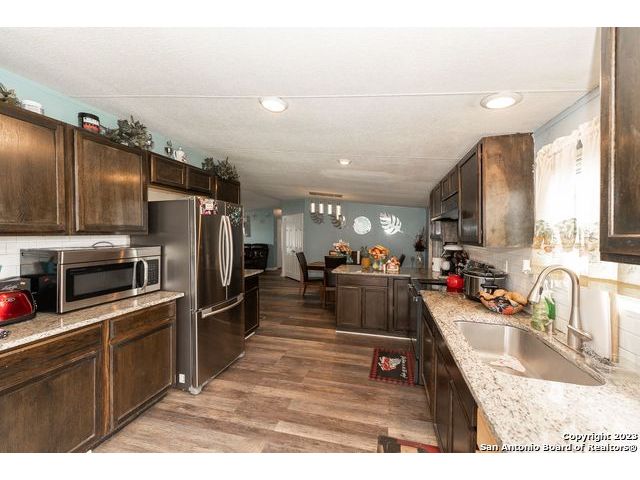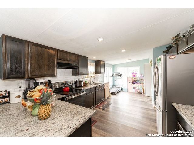 Well maintenance country living house not far from the city. Great opportunity like this don't come along often. 4 bedrooms, 3 bath, office, new front porch, bathrooms and kitchen renovated, carpet just in one of the bedrooms and office, open floor plan, new paint, corner lot. Close to Hwy 1604 and 410, La Vernia, Floresville, enjoy the quiet neighborhood with your family and friend. DO NOT MISS THIS OPORTUNITY OF TOURING THIS HOUSE