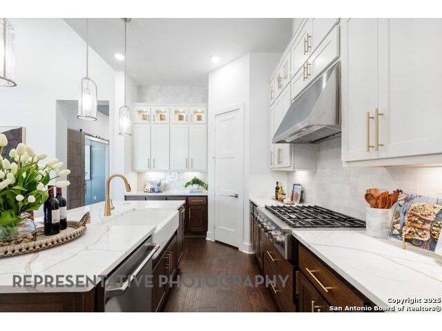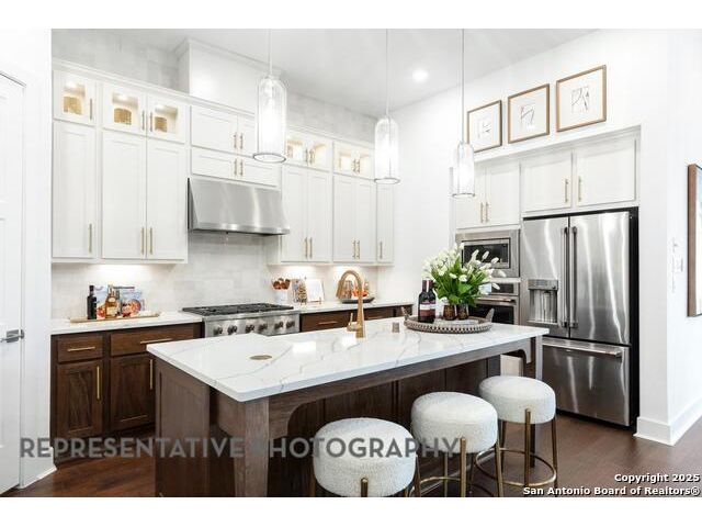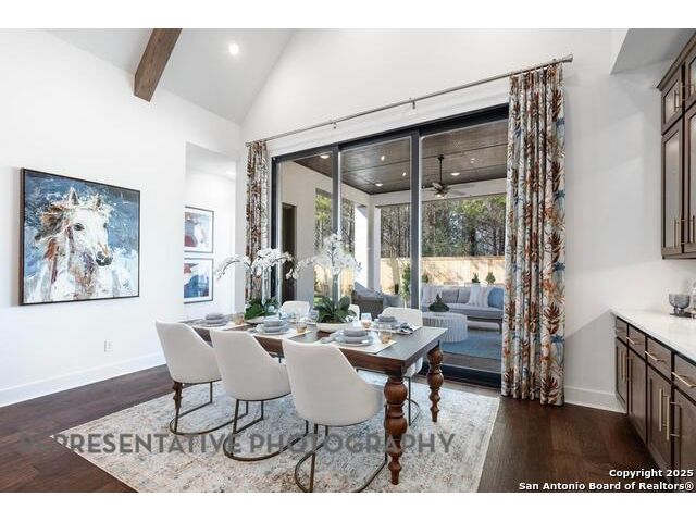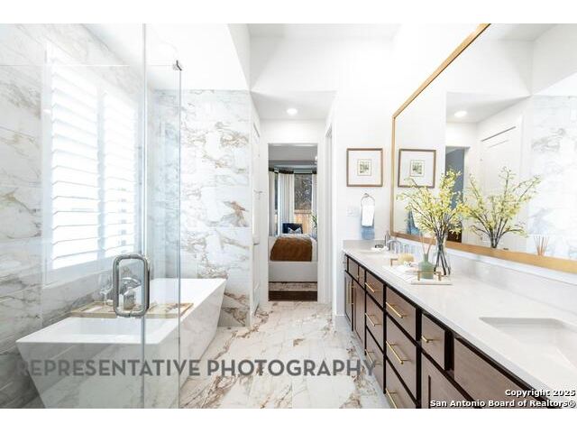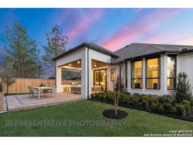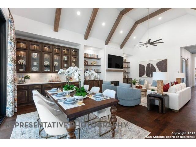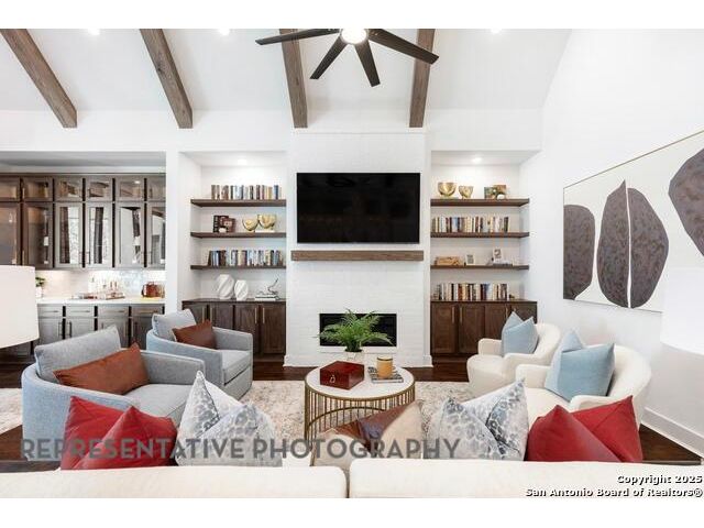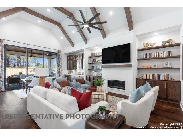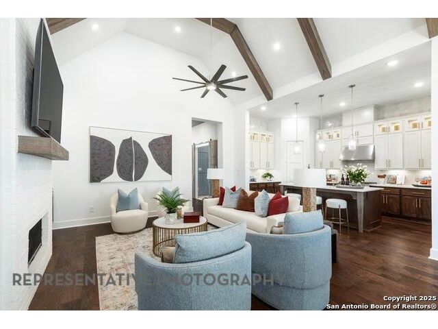 This elegant 2,600-square-foot single-story home features soaring high ceilings and a warm, inviting fireplace at the heart of the living space. With four spacious bedrooms and four-and-a-half beautifully appointed baths, it offers comfort and privacy for everyone. A dedicated study provides the perfect work-from-home retreat, while the media room adds an ideal space for entertainment. Thoughtfully designed and generously sized, this home blends luxury and functionality in every detail.