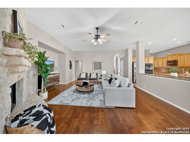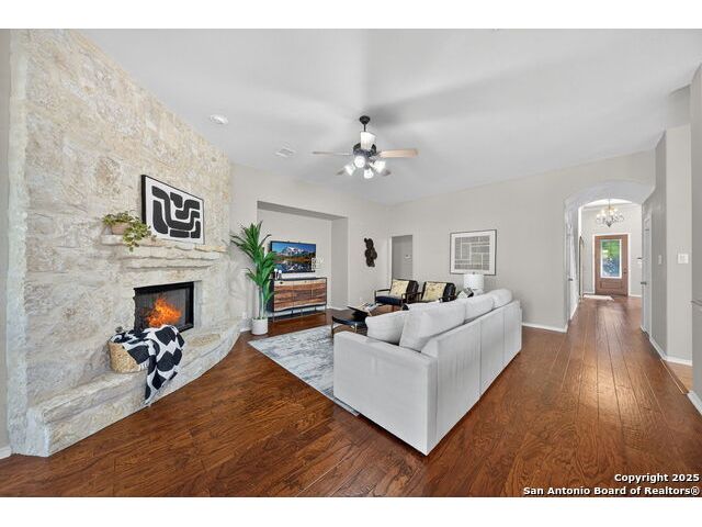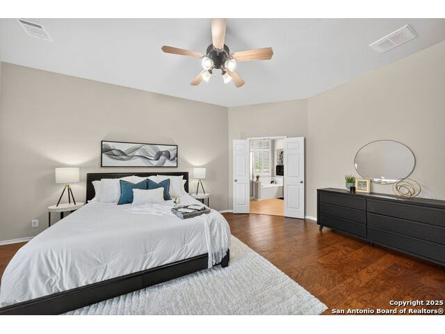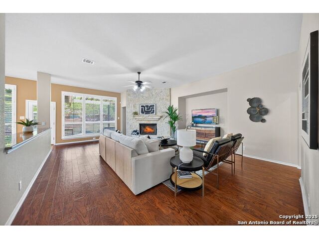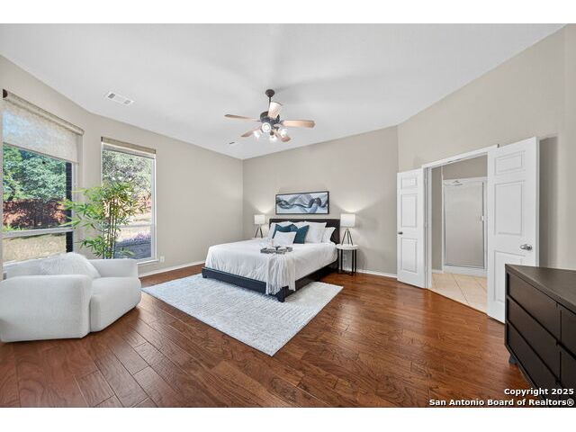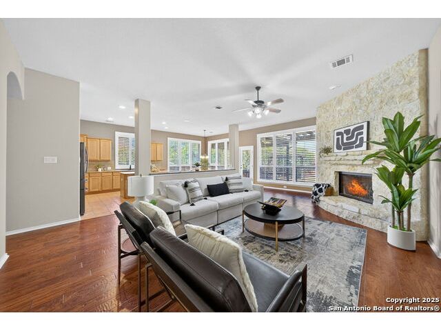 Tucked Away in The Prestigious Gated Hills of Sonoma Ranch, this Gorgeous, Top Quality 1.5 Story Highland Home Layout Has It All! Lots of Privacy with No Neighbors to the Right, Over a Quarter of an Acre! At the End of the Cul-De-Sac for Quiet, Private Living! Three Bedrooms offers an Open and Expansive Study with Sliding Barn Doors Overlooking the Front Yard and Cul-De-Sac!, 3 1/2 Bathrooms, and All Bedrooms, Downstairs! A Vast Expanse of Gleaming Wood Floors makes it Easy to Clean. Massive Chef's Dream Kitchen Perfect for Entertaining as it Connects to the Large, Open Family Room with a Lovely Corner Fireplace. Huge Primary Bedroom is Privately located in the Back of the Home with Beautiful Views of the Private, Quiet, Gorgeous Backyard. But wait...There's MORE! Both a Gameroon AND Media Room Upstairs, for the Ultimate Entertainer's Destination! Out Back, Spwnd Quiet Evenings and Mornings under The Magnificent Covered Patio with a Stunning Cathedral Ceiling. There's also a Permanent Gazebo, Perfect for Grilling or a Fire Pit with S'mores! Strategically priced below market to encourage strong, early interest. Seller anticipates multiple offers based on neighborhood values in the mid-$500s. Come Judge the Quality and Beauty for Yourself when you See this Wonderful Home!