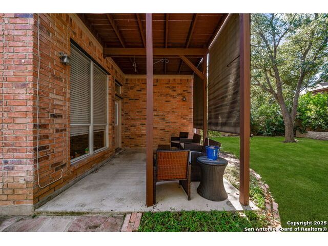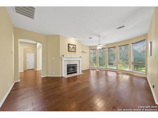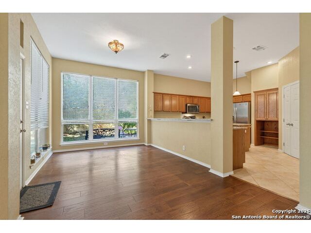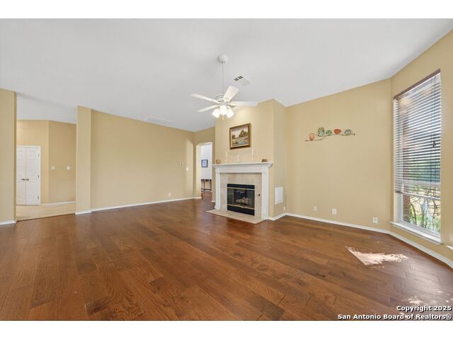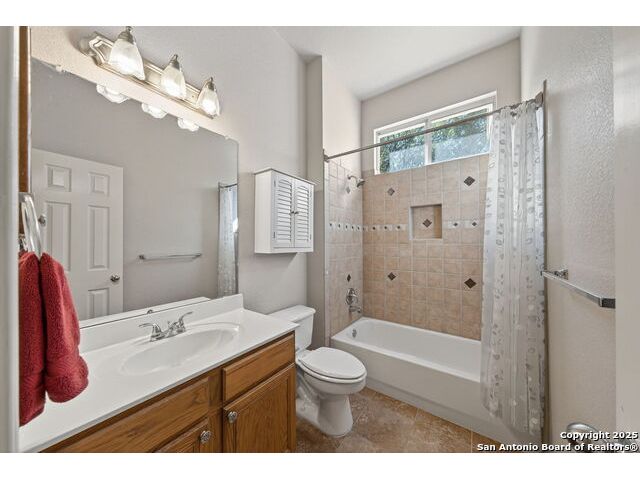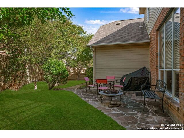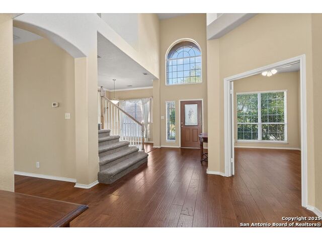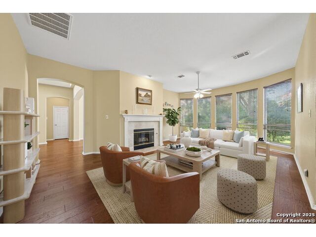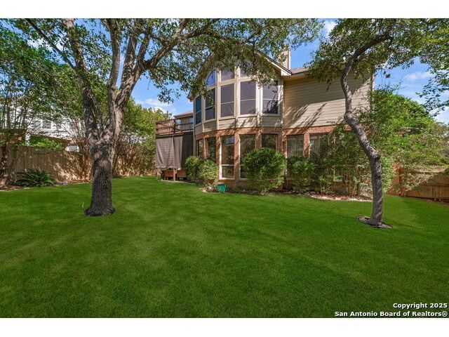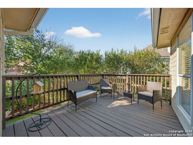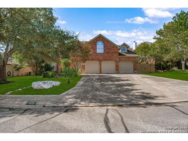 Welcome to this spacious and well-appointed 4-bedroom, 3-bath, 3-car garage home located in the heart of the Sonterra-Stone Oak community. This thoughtfully designed floorplan offers 3 living areas - a welcoming family room, a living room, and a game room, PLUS a study providing flexibility for work, relaxation, and entertainment; the study could also be used as a 5th bedroom. You will find the 3-car oversized garage has plenty of space for vehicles, a workshop, or extra storage. Downstairs, you'll find gorgeous warm wood floors, a cozy fireplace, and a bright dining room perfect for gatherings. The kitchen features granite countertops, a double oven, and ample cabinetry and storage, making it ideal for home chefs, plus a breakfast nook for an additional eating area. A 2nd bedroom downstairs with a full bath lends itself to be perfect for guests or multi-generational living. Retreat upstairs to the spacious primary suite, including a whirlpool garden tub, separate shower, dual vanities, a large walk-in closet, and an additional living area with access to a charming balcony, offering a peaceful spot to unwind. Step outside to a covered patio and a separate flagstone patio area ideal for outdoor entertaining. With 4 sides of brick, this home combines durability with classic curb appeal. Conveniently located near Loop 1604, Hwy 281, the Airport, Shopping, Dining, and the Stone Oak/Sonterra lifestyle, this home offers comfort and convenience in one of San Antonio's most sought-after areas. Zoned for NEISD schools and Reagan High School. Don't miss this exceptional opportunity-schedule your showing today!