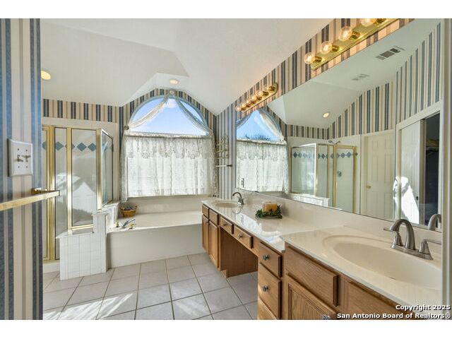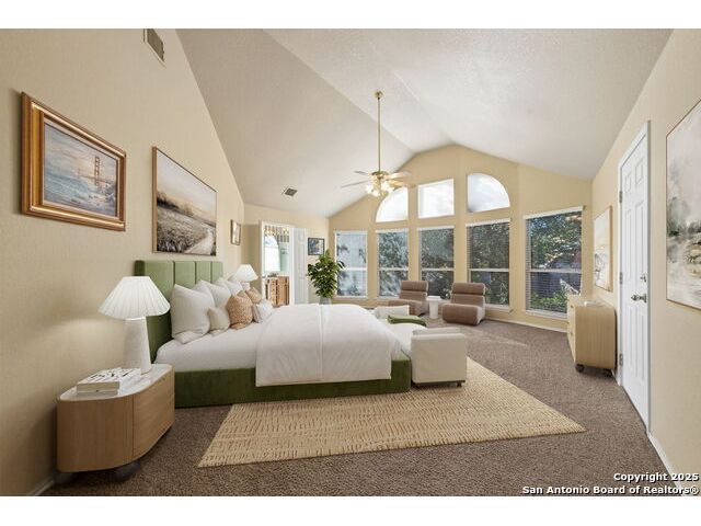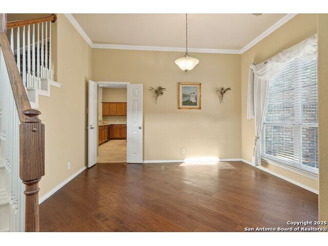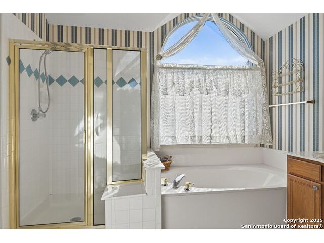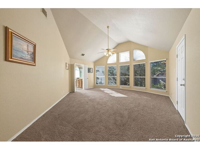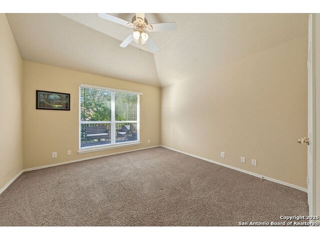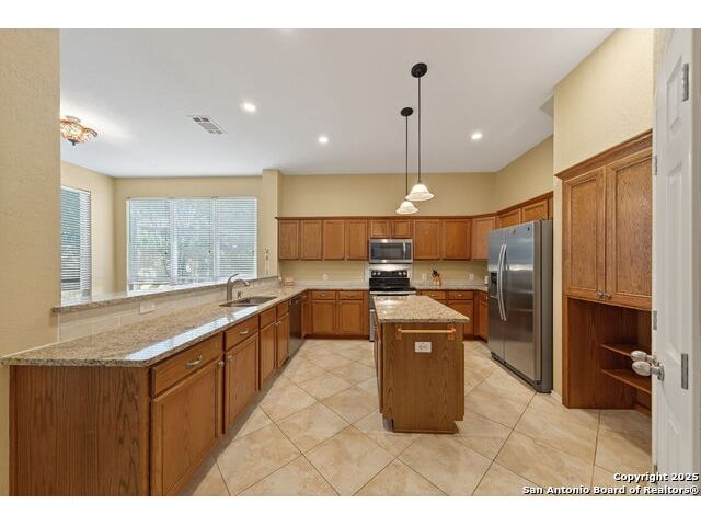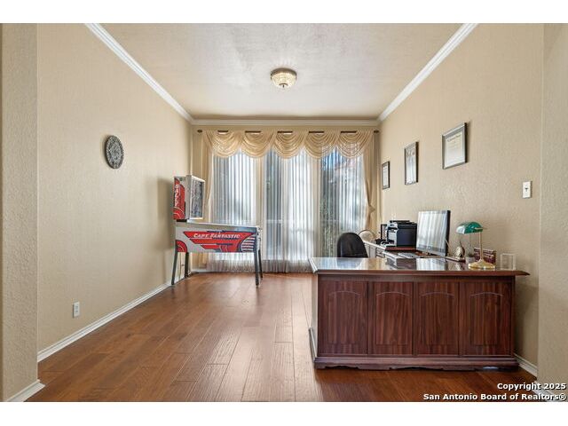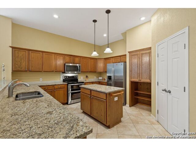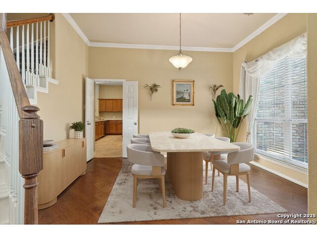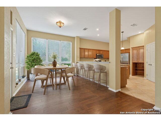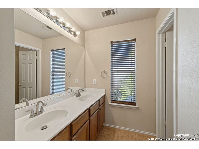 Welcome to this spacious and well-appointed 4-bedroom, 3-bath, 3-car garage home located in the heart of the Sonterra-Stone Oak community. This thoughtfully designed floorplan offers 3 living areas - a welcoming family room, a living room, and a game room, PLUS a study providing flexibility for work, relaxation, and entertainment; the study could also be used as a 5th bedroom. You will find the 3-car oversized garage has plenty of space for vehicles, a workshop, or extra storage. Downstairs, you'll find gorgeous warm wood floors, a cozy fireplace, and a bright dining room perfect for gatherings. The kitchen features granite countertops, a double oven, and ample cabinetry and storage, making it ideal for home chefs, plus a breakfast nook for an additional eating area. A 2nd bedroom downstairs with a full bath lends itself to be perfect for guests or multi-generational living. Retreat upstairs to the spacious primary suite, including a whirlpool garden tub, separate shower, dual vanities, a large walk-in closet, and an additional living area with access to a charming balcony, offering a peaceful spot to unwind. Step outside to a covered patio and a separate flagstone patio area ideal for outdoor entertaining. With 4 sides of brick, this home combines durability with classic curb appeal. Conveniently located near Loop 1604, Hwy 281, the Airport, Shopping, Dining, and the Stone Oak/Sonterra lifestyle, this home offers comfort and convenience in one of San Antonio's most sought-after areas. Zoned for NEISD schools and Reagan High School. Don't miss this exceptional opportunity-schedule your showing today!