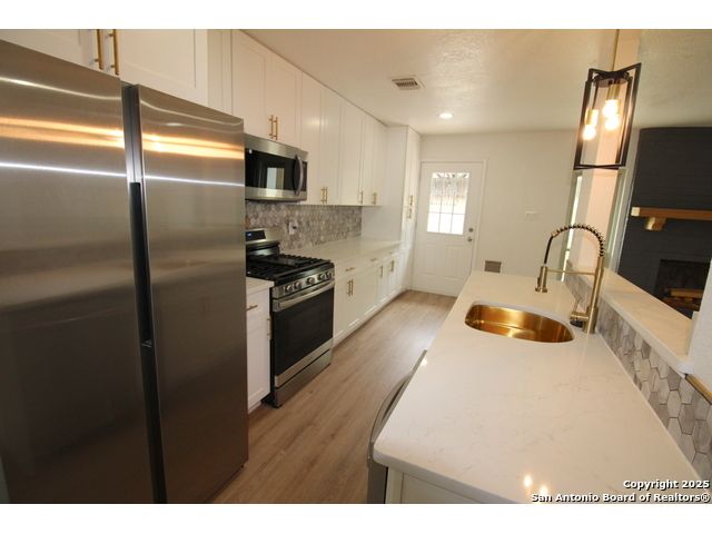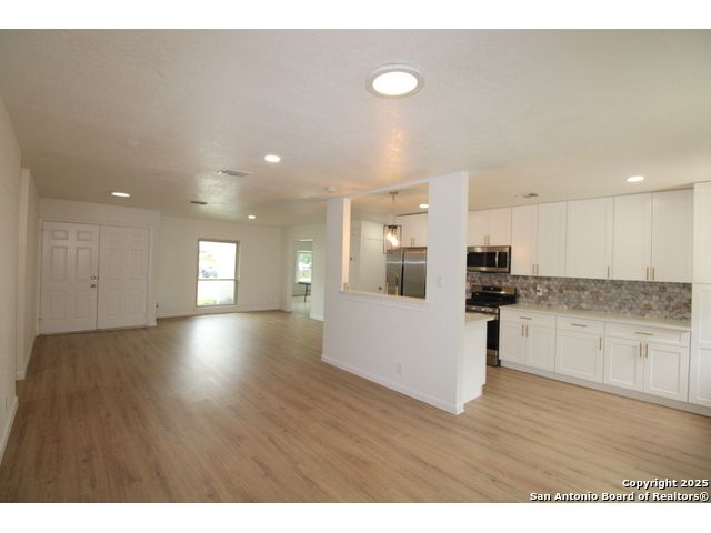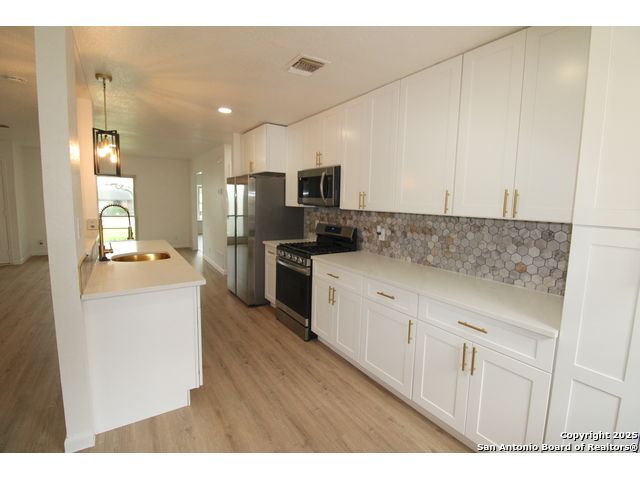 Beautiful one story 3 bedroom 2 bath home features an open concept floor-plan with two living spaces/game room! Upgrades include new flooring throughout, no carpet , fresh paint, brand new soft close kitchen cabinets , quartz countertops, stylish backsplash, under-mount kitchen sink, stainless steel appliances, gas cooking, updated lighting, and solar panels. Large lot in a cul-de-sac.