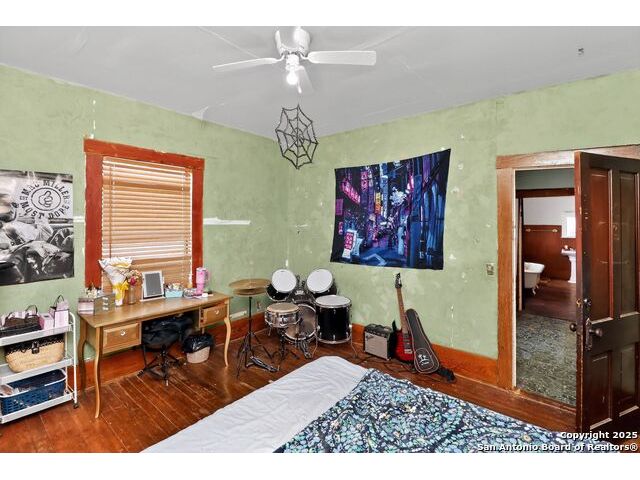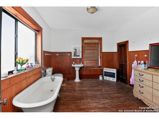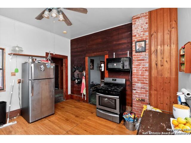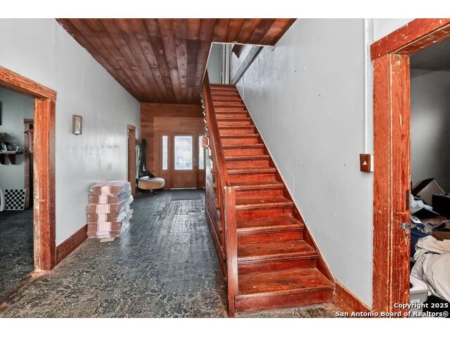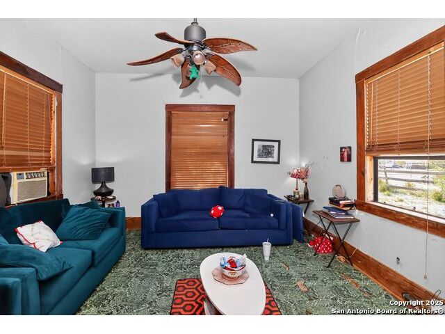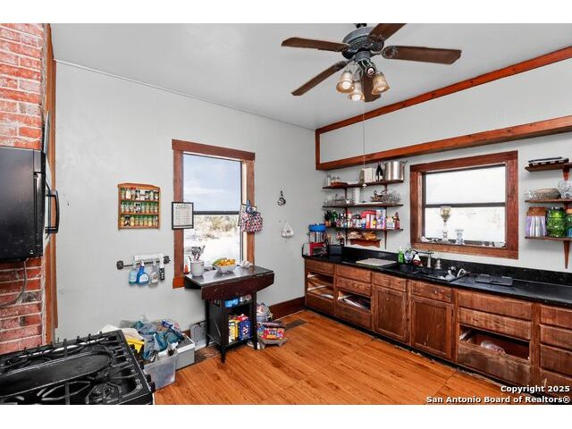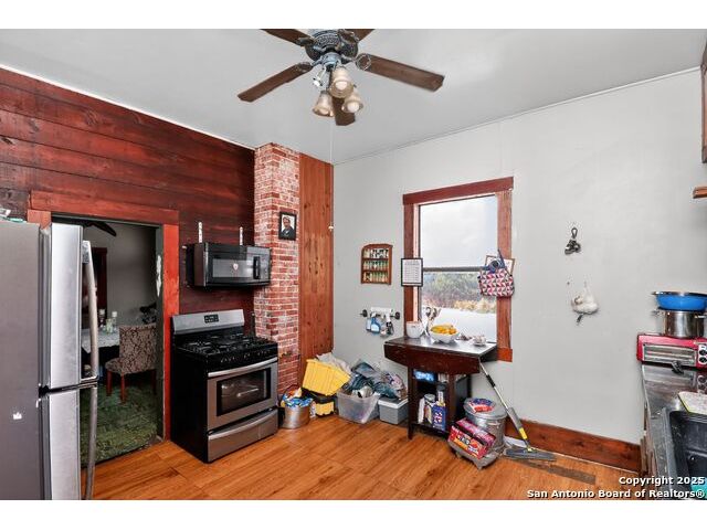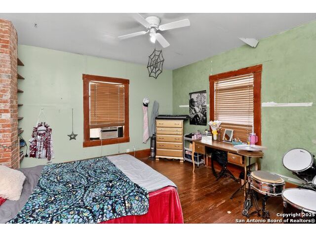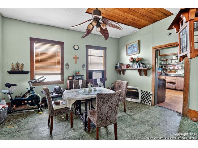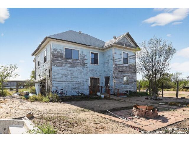 This two-story home features 4 bedrooms-2 bathrooms with 2,520 sq. ft. of living space. The property sits on a 3.15 acre lot. The kitchen includes wooden cabinets, laminated countertops, and wooden flooring. The living room has vinyl flooring and a window-type AC, while the dining area offers vinyl flooring, a window-type AC, and a wall-mounted gas heater. Bedrooms include a mix of window-type and portable AC units, all with wooden flooring. The bathrooms also feature wall-mounted gas heaters, and there is a dedicated laundry area with wooden cabinets for storage. The property includes a front balcony and patio, along with an open backyard featuring a fire pit ideal for barbecue nights. A wooden fence provides added privacy. The home will benefit from cosmetic repairs and some TLC, offering a great opportunity for customization.