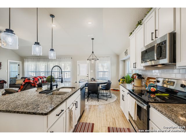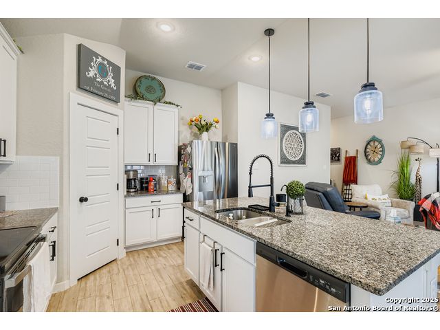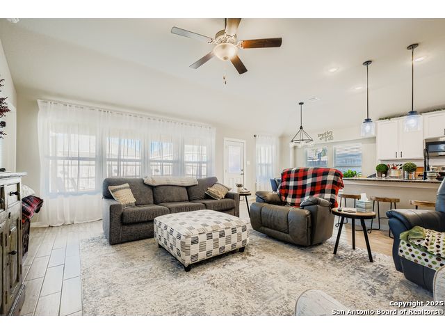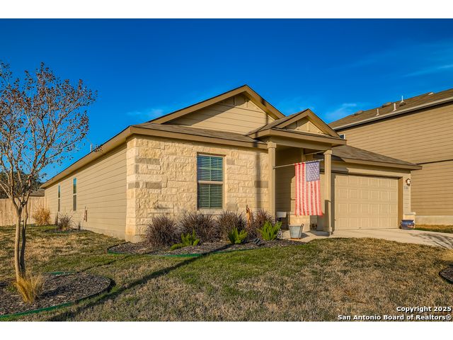 Welcome to this beautifully maintained newer-construction home in the desirable Greenspoint Heights subdivision, ideally positioned on a corner lot just moments from HWY 46. Thoughtfully designed for comfort and practicality, this 4-bedroom, 3-bathroom residence with a 2-car garage offers a harmonious blend of style, functionality, and everyday convenience. A generous 5-foot-wide entry foyer sets the tone, opening into a bright, inviting living space filled with abundant natural light. The open floor plan enhances flow and flexibility, complemented by quality fixtures and modern finishes throughout. The well-appointed kitchen features granite countertops, ample storage, and an easy layout perfect for cooking, entertaining, and daily living. The split floor plan ensures enhanced privacy. The spacious main bedroom includes double sinks with granite countertops, a walk-in shower, and a generous walk-in closet. Secondary bedrooms are comfortably sized and versatile, ideal for guests, family, or home office needs. Offers 2 Primary Suites. A separate laundry room adds convenience and includes a whole-home water system. Step outside to a nicely sized backyard with a covered patio-ideal for relaxing, grilling, or enjoying peaceful evenings. The home is conveniently located near the community pool and amenities, with quick access to the Guadalupe River where paddle boarding, canoeing, and fishing are all welcomed. This quiet, serene neighborhood offers a tranquil retreat while keeping you just minutes from the charm and attractions of New Braunfels. Combining modern comfort with a serene setting, this lovely home is ready to welcome its next owner.