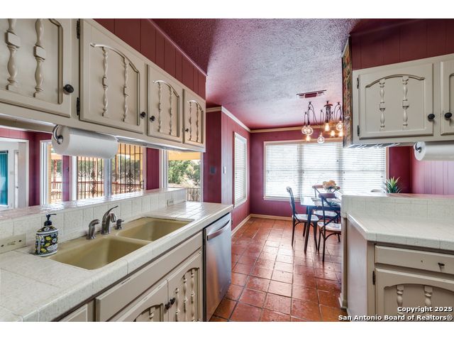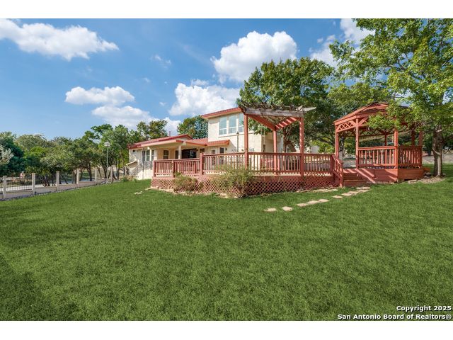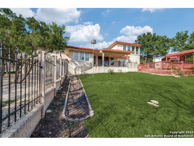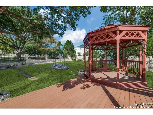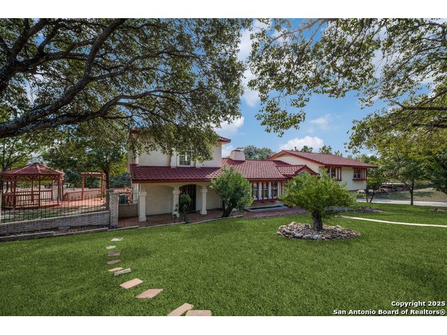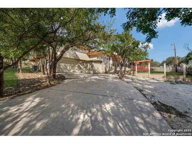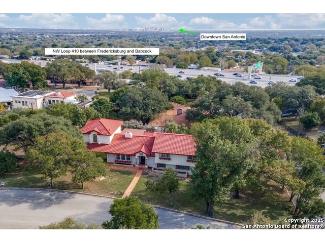 Located in the highly desirable Oak Hills neighborhood just outside Loop 410 between Fredericksburg and Babcock, this one-of-a-kind property offers timeless character and exceptional convenience. Oak Hills is a well-established San Antonio community known for its mature landscaping, generous lots, and mid-century architectural appeal-all in a prime location between Downtown San Antonio and the Medical Center. Custom built in 1969 and lovingly owned by one family, 6410 Laurel Hill is filled with unique features you won't find anywhere else. Step into a warm and inviting living room highlighted by a double-sided gas fireplace that seamlessly connects the formal living and dining rooms. The dining room and kitchen overlook a spacious covered patio that extends to a deck and charming gazebo-perfect for year-round gatherings. Thoughtfully designed, the home offers two separate bedroom wings. One side features a primary bedroom with a full bath, with a beautifully appointed entertainment room above that showcases scenic views. The opposite side includes a second primary bedroom, plus two additional bedrooms. With 3 full baths and 2 half baths, this home provides both comfort and flexibility for family or guests. Set on just under a half-acre corner lot, this property offers a peaceful retreat in the heart of the city. From its distinctive architecture to its ample entertaining spaces, this is a special home ready to welcome its next chapter.