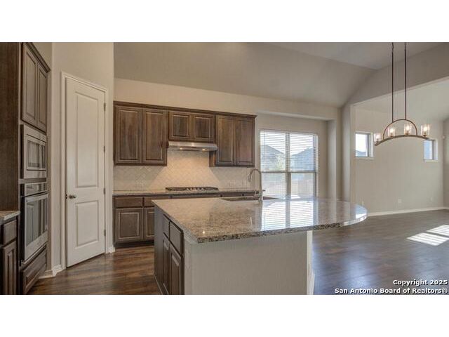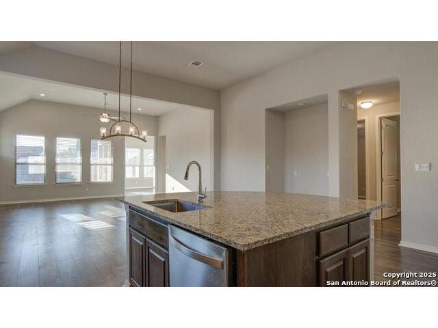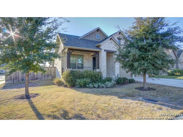 "La Cima Master Planned Community", San Marcos, 3 bedroom, 2 bath, Approx 2,106 square feet, Level Corner lot, one story, 4 sides masonry, Flex/Office, Open Island Kitchen, Granite counter tops, overlooking spacious dining and living area, High Ceilings, laminate wood flooring, ceramic tile, relaxing Sun Room, 2 good sized spare bedrooms, 2 car garage, water softener, relaxing front porch, COVENTRY Home built in 2021, Covered Rear patio with gas grill hookup at patio for fire pit, stone and brick extended patio, crushed base landscaping, Sprinkler system, Show your buyers to this gently used home!!