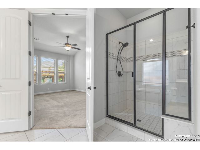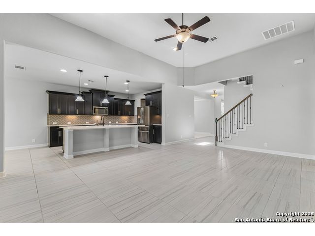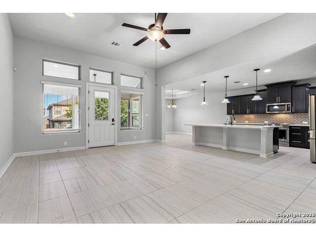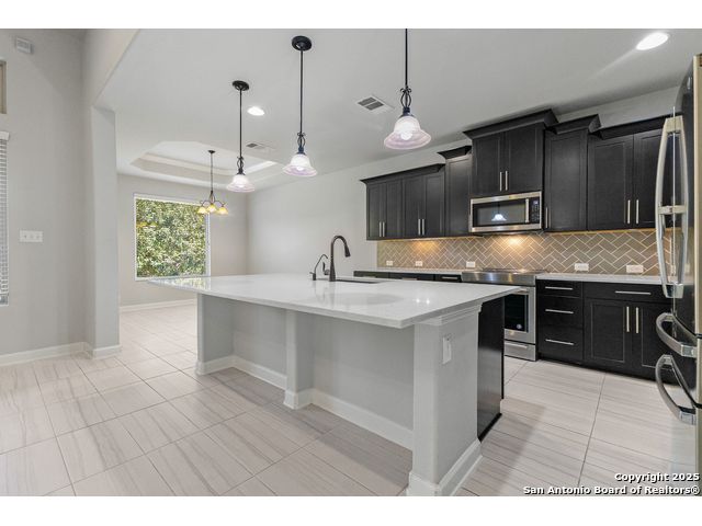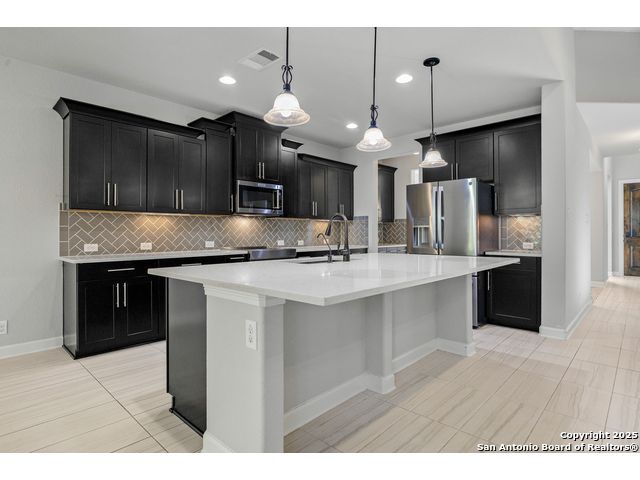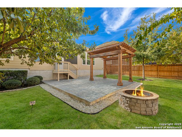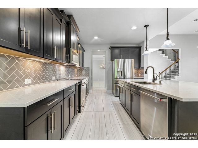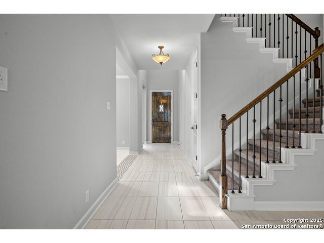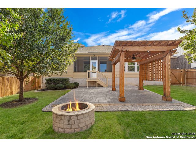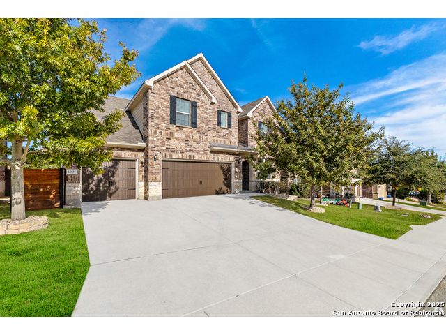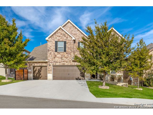 This beautifully updated 3,277 sq ft home offers stunning curb appeal, a full brick exterior, and a 3-car epoxy garage. Inside, enjoy an open floor plan with high ceilings, upgraded tile flooring, a dedicated office with French doors, and a spacious dining room. The chef's kitchen features quartz countertops, custom dark cabinetry, herringbone backsplash, stainless steel appliances, and a large island overlooking the living area. The primary suite is down, offering a spa-like bath with split vanities, soaking tub, walk-in shower, and an impressive custom closet system. Upstairs includes a large second living/game/media room, oversized secondary bedrooms, and walk-in closets. The backyard is a true retreat with a custom pergola, stamped concrete patio, screened-in porch, mature landscaping, and a stone fire pit. Additional upgrades include a tankless water heater, whole-home water softener, epoxy-coated porches, and well-maintained major systems with a 7-year roof, HVAC, and windows. The community offers desirable amenities such as a refreshing pool, jogging trails, and beautifully kept common areas, adding even more value to the lifestyle this home provides.