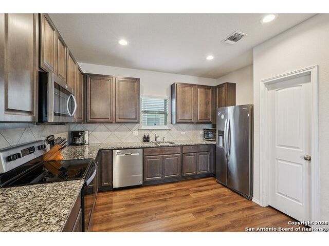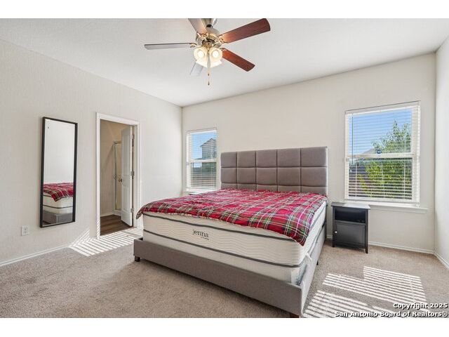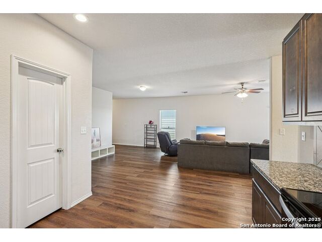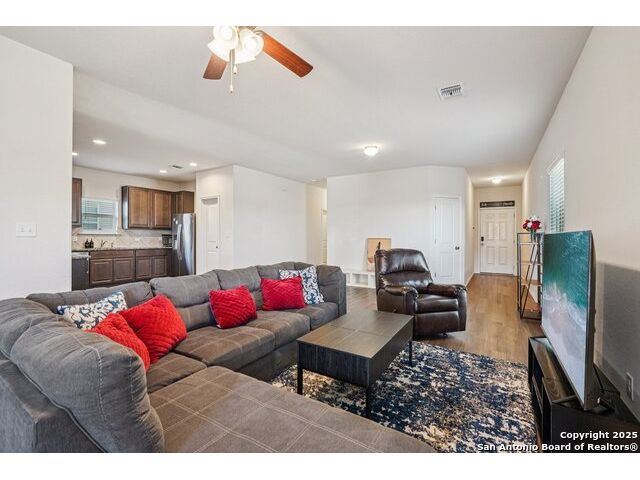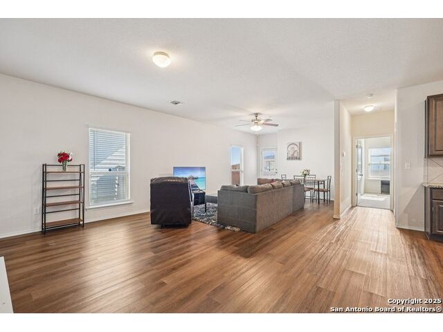 Built in 2019, this charming 3-bedroom, 2-bath home in Millican Grove offers a modern open layout designed for comfortable everyday living. Vinyl plank flooring extends throughout the main areas, with carpeted bedrooms for added comfort. The kitchen features granite countertops, stainless steel appliances, and a seamless flow into the dining and living spaces. A covered patio provides a great spot to relax outdoors, and the home includes a spacious two-car garage. Convenient access to IH-10 and Loop 1604 makes commuting into San Antonio simple, and a new H-E-B is currently under construction nearby for added convenience. Located close to Randolph AFB and Fort Sam Houston, this move-in-ready home is an excellent option for military families or first-time homebuyers seeking both comfort and location.
