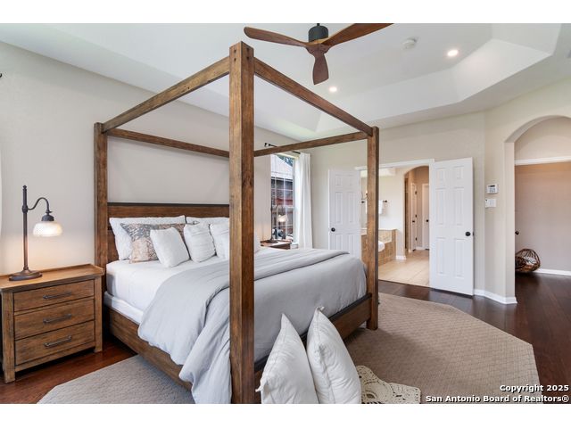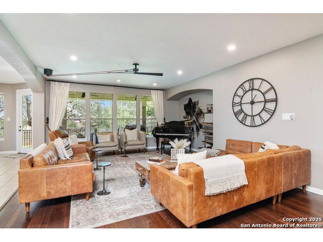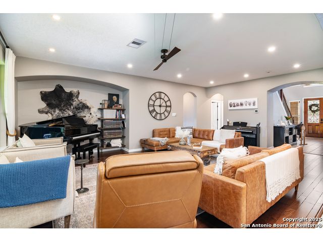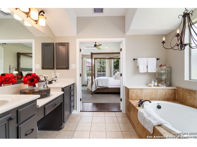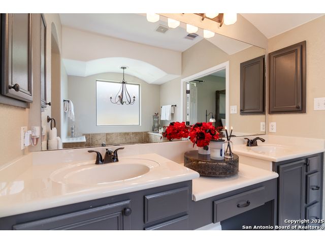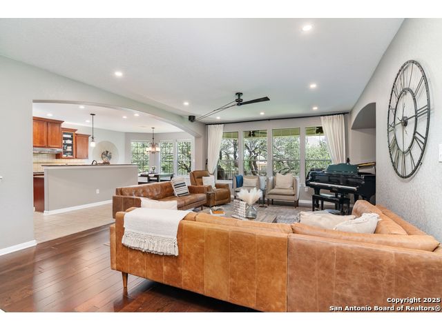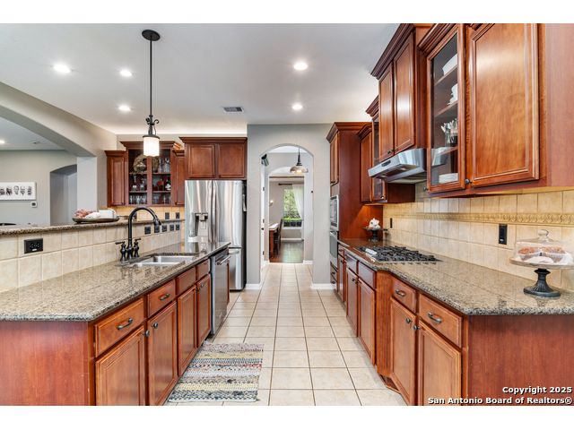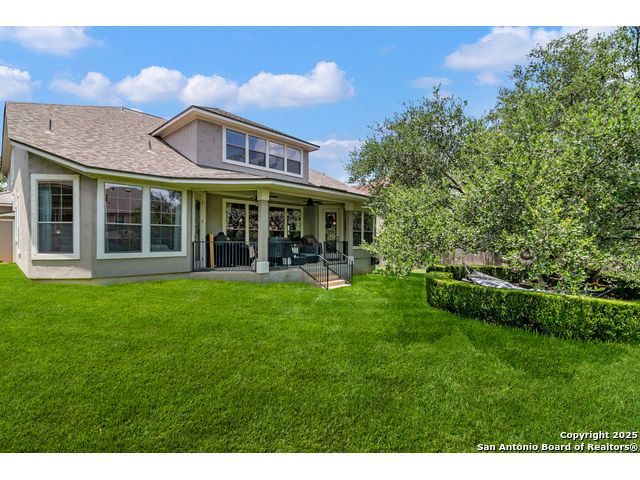 A storybook setting in the heart of Stone Oak. As you pull into the quiet street of Ashbury Bay, mature shade trees line the street and manicured landscaping welcomes you home. Step inside and you're greeted by a soaring two story foyer, where natural light pours through tall windows and a sense of calm settles in. The heart of the home is the open concept living area, where laughter spills from the spacious kitchen, designed for connection and culinary creativity. Stainless steel appliances gleam under soft lighting, and the gas cooktop waits to bring your favorite recipes to life. A butler's pantry and walk in pantry make entertaining effortless, while the breakfast bar invites slow mornings and conversation over coffee. Just off the main living space, the downstairs primary suite offers privacy and comfort. It is your personal retreat at the end of a long day. Upstairs, a loft style library balcony overlooks the living room, leading to a tucked away bonus room perfect for movie nights, a playroom, or a quiet home office. Outside, the backyard is your private oasis. Beautifully landscaped with rolling green space and flowering beds, it's the kind of yard where summer evenings are best spent. Remodeled guest bathrooms, updated flooring, and luxurious carpet upstairs give this home a fresh, refined feel throughout. Every detail has been thoughtfully curated for both beauty and comfort. But it's not just the home, it's where it's located. Set in the heart of Stone Oak, you're just minutes from top-rated restaurants, major hospitals, and everyday conveniences like HEB and Target. For weekend outings or evening walks, several community parks and trails are within easy reach, offering the perfect blend of nature and neighborhood living.